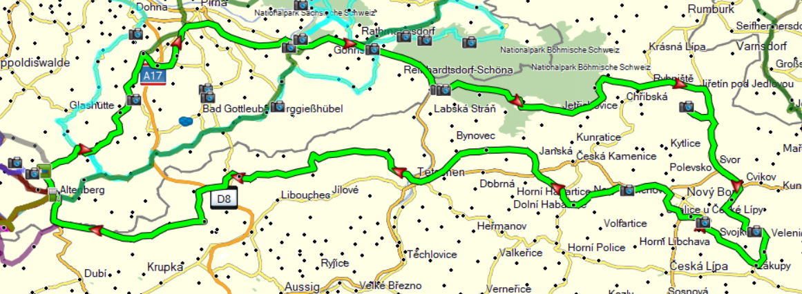 Wetter hat sich wieder beruhigt. Auf dem Programm steht Tschechien mit der Motorradhöhle Pekelné Doly. Über Bad Schandau ging es nach Tschechien, hauptsächlich kleine Strässchen standen auf dem Programm.