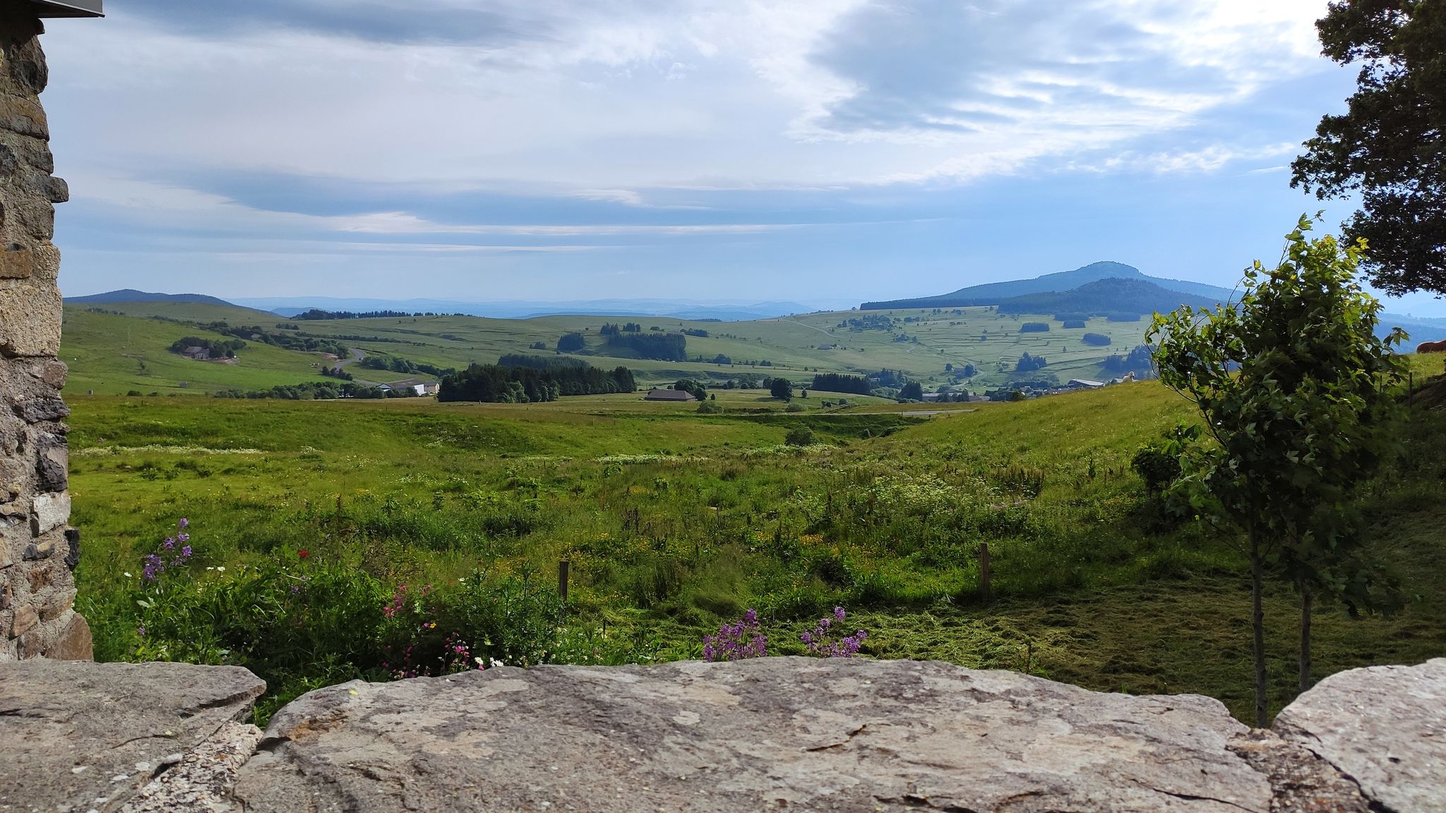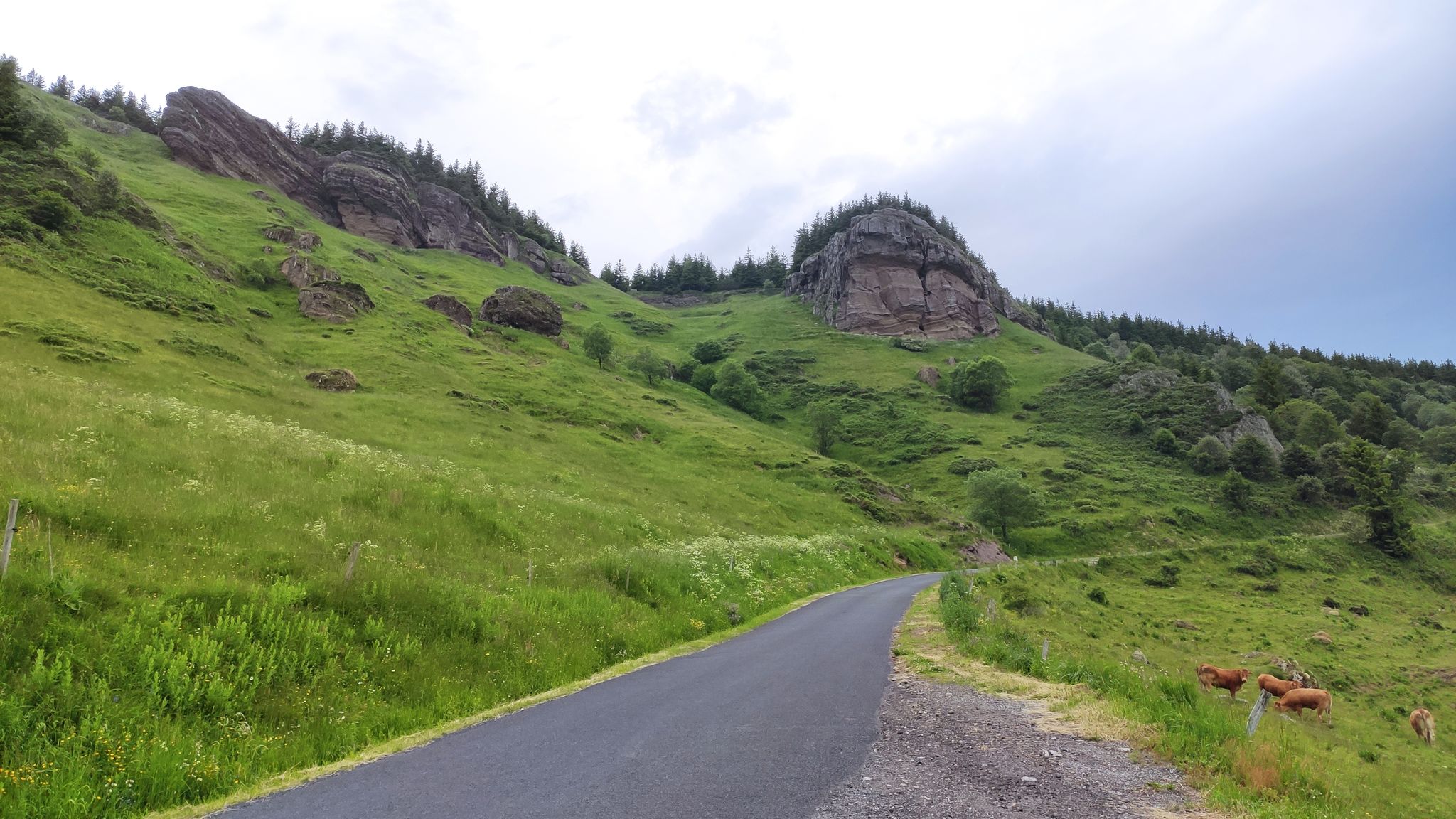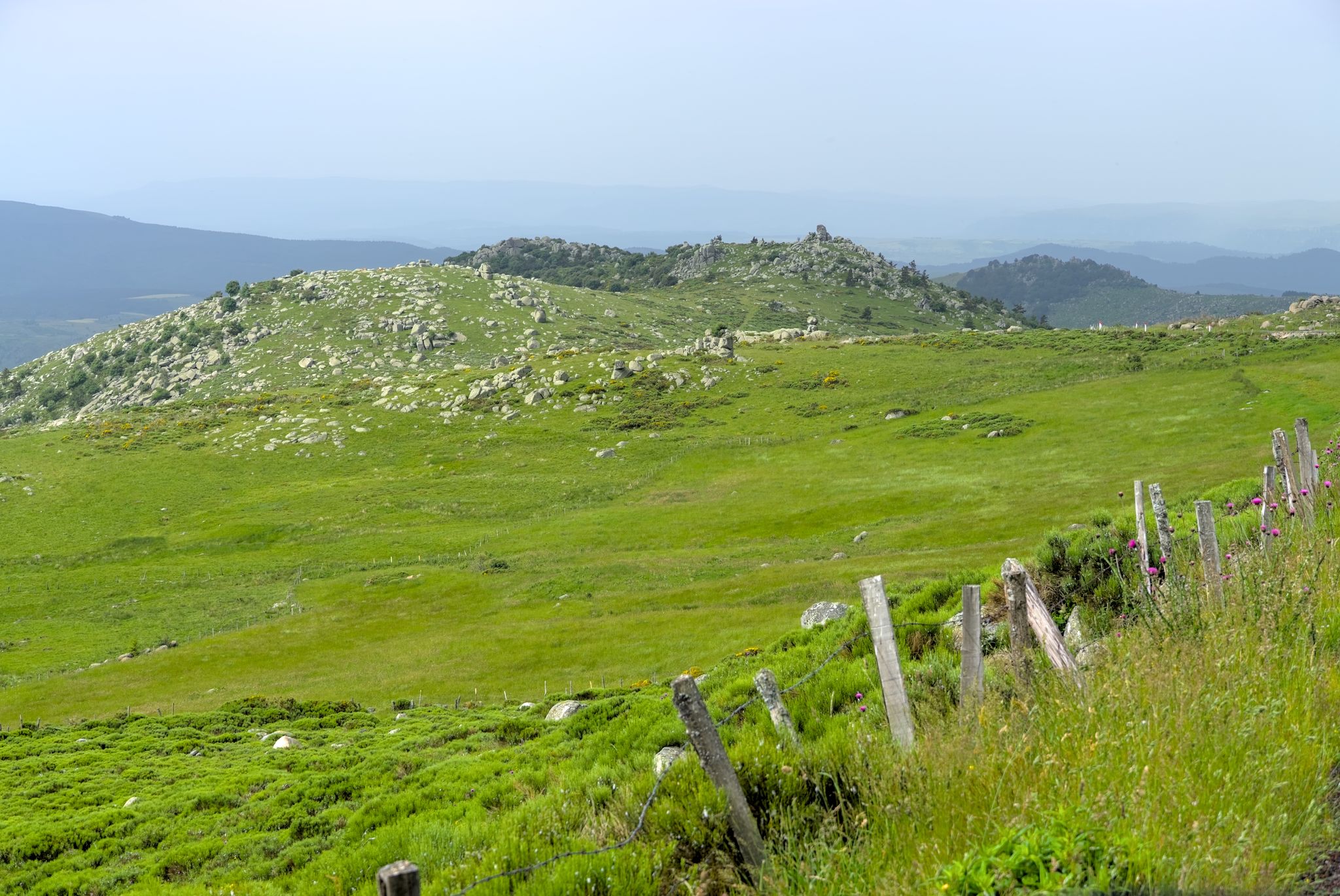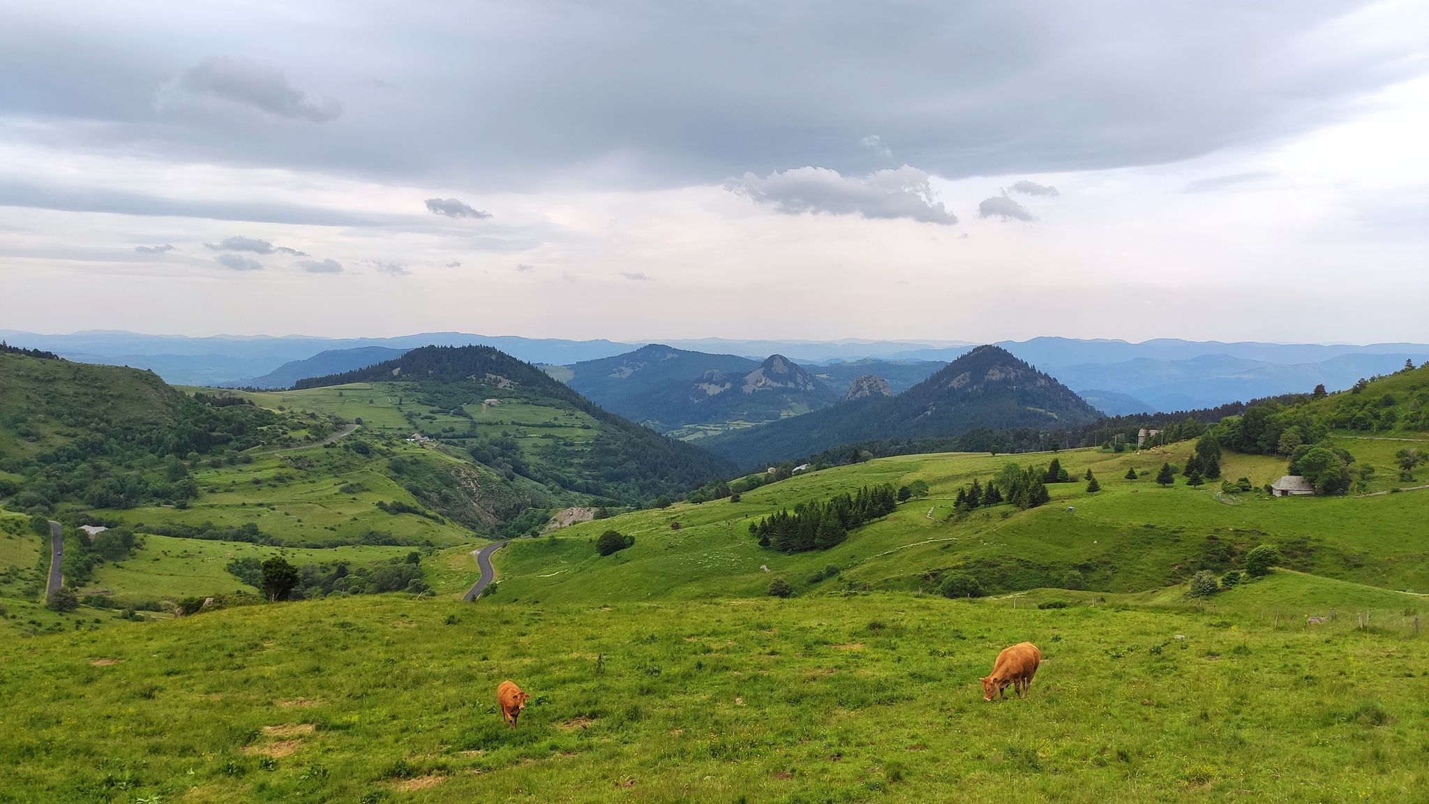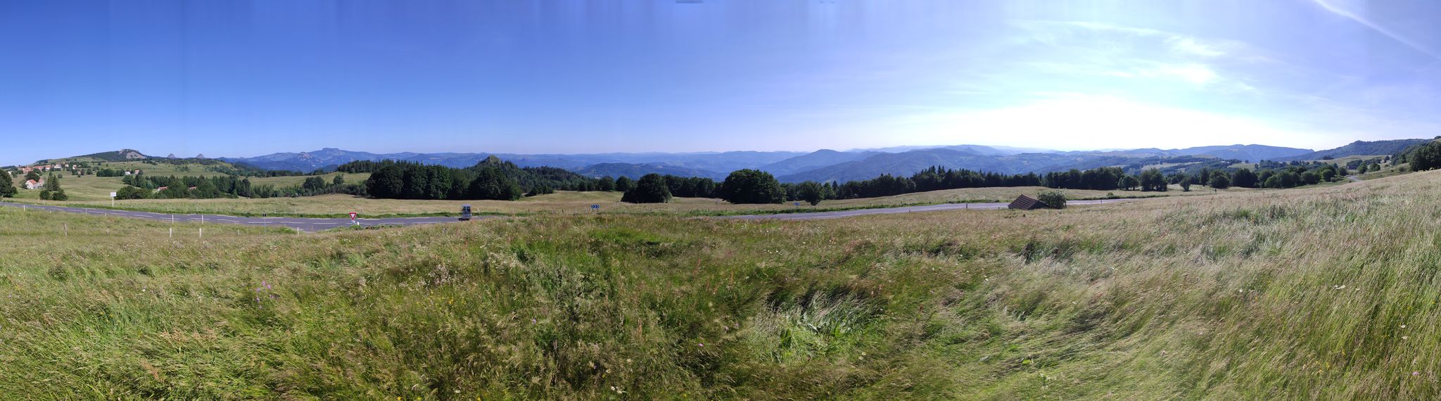 Zuerst ging es aber Col de Mézilhac (G-Maps). Ein Stückchen noch Richtung Lachamp-Raphaël, dort gab es ein wunderbares Panorama rüber zum Mont Gerbier.