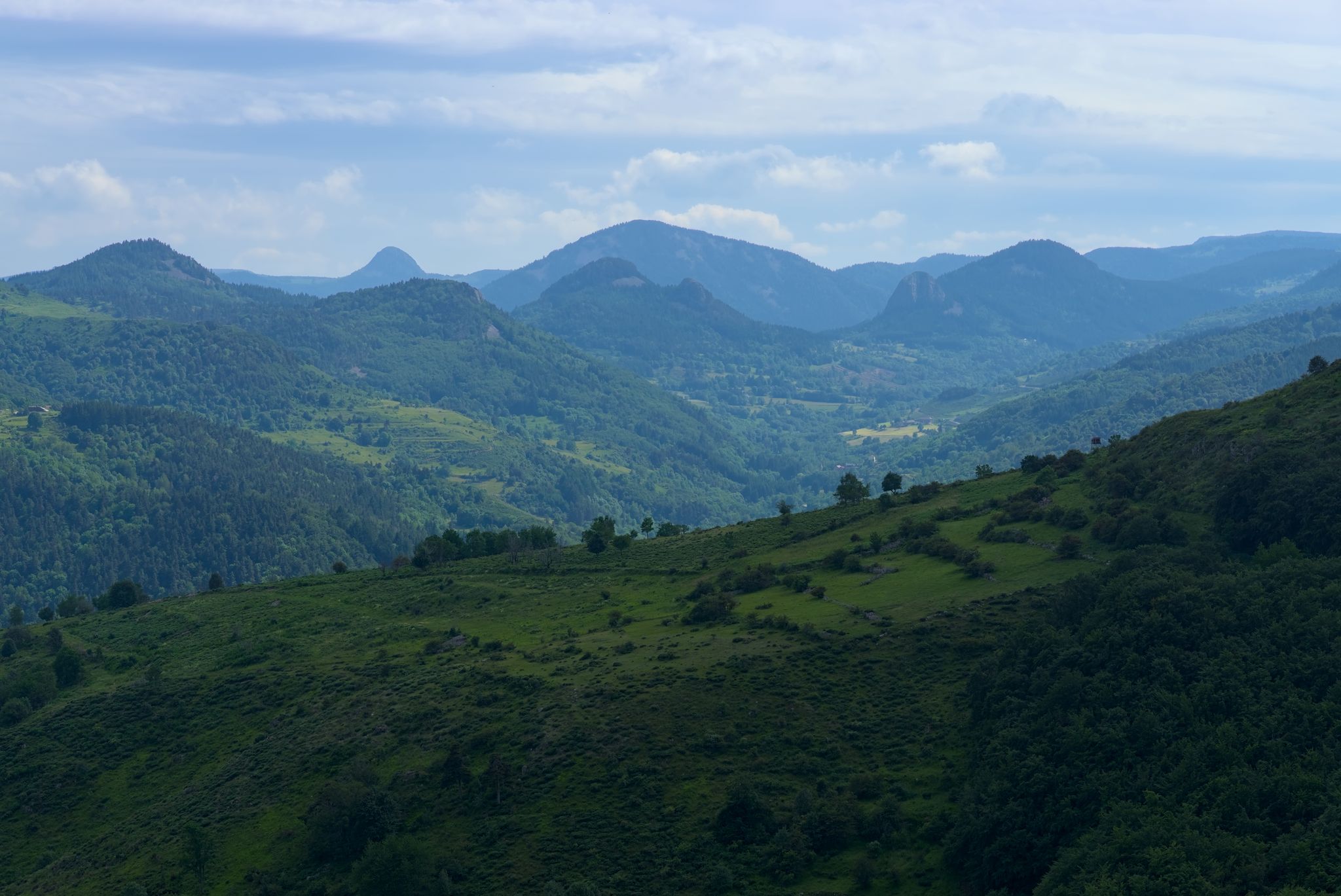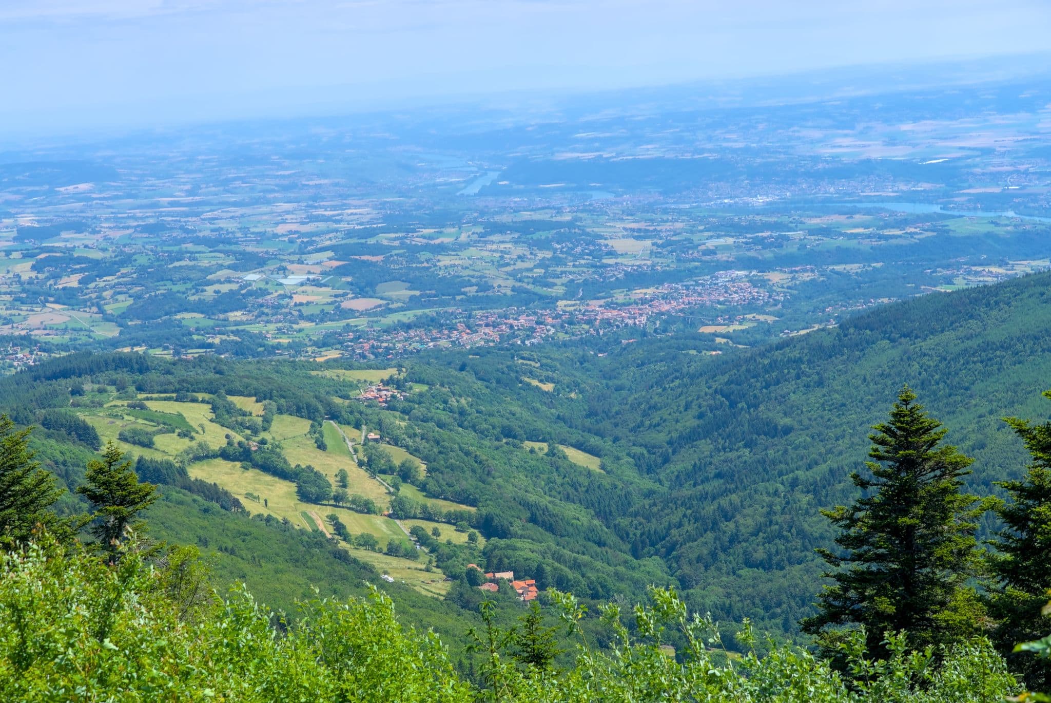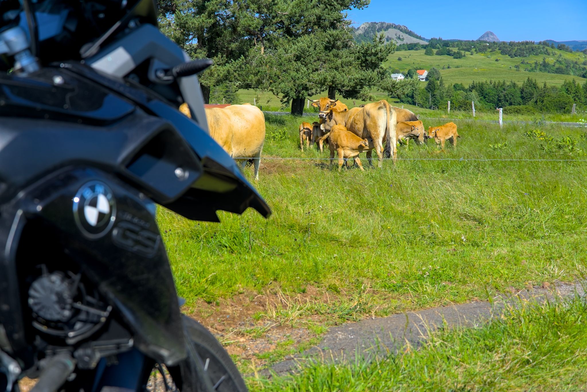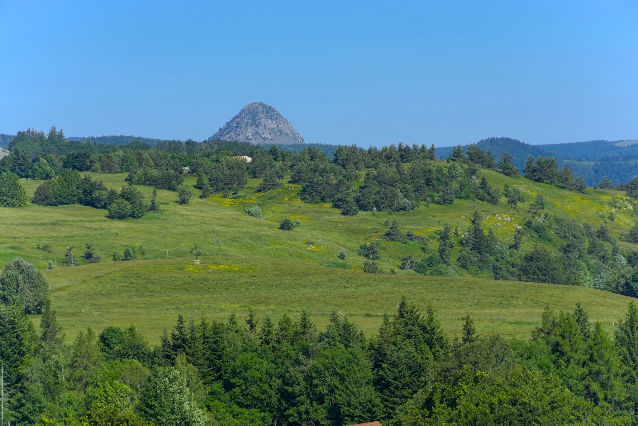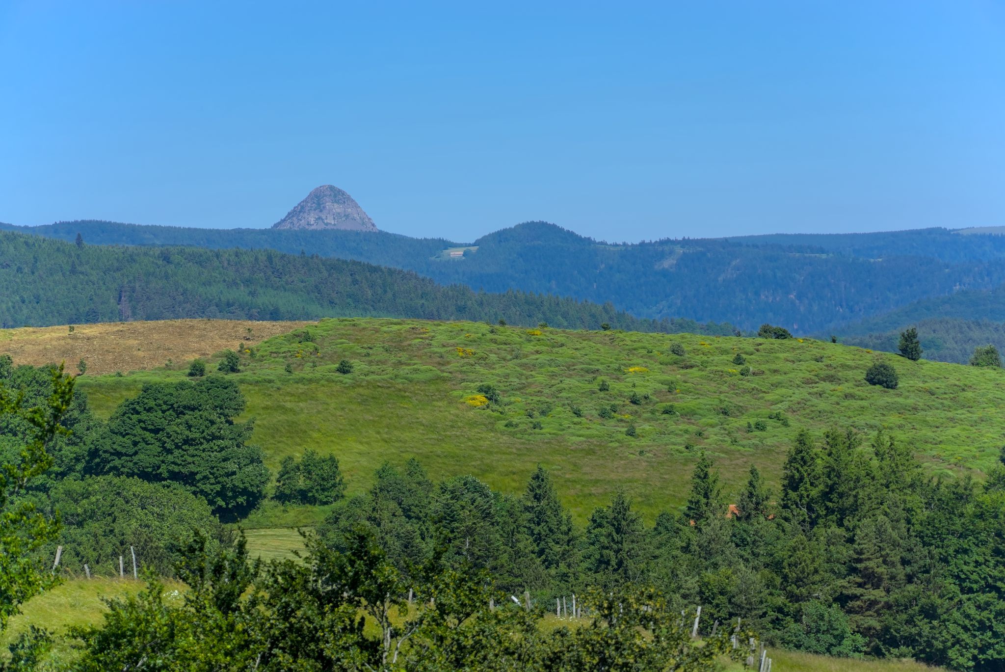 Zuerst ging es aber Col de Mézilhac (G-Maps). Ein Stückchen noch Richtung Lachamp-Raphaël, dort gab es ein wunderbares Panorama rüber zum Mont Gerbier.