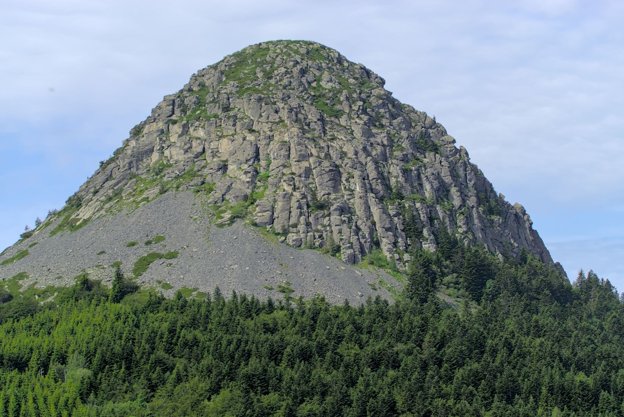 Der Mont Gerbier ist ein sehr markanter Berg, sieht ein bissel aus wie ein umgedrehter Eierbecher und ist ein erloschener Vulkankegel aus Phonolithgestein (Wikipedia). Hier findet sich auch die Quelle der Loire.