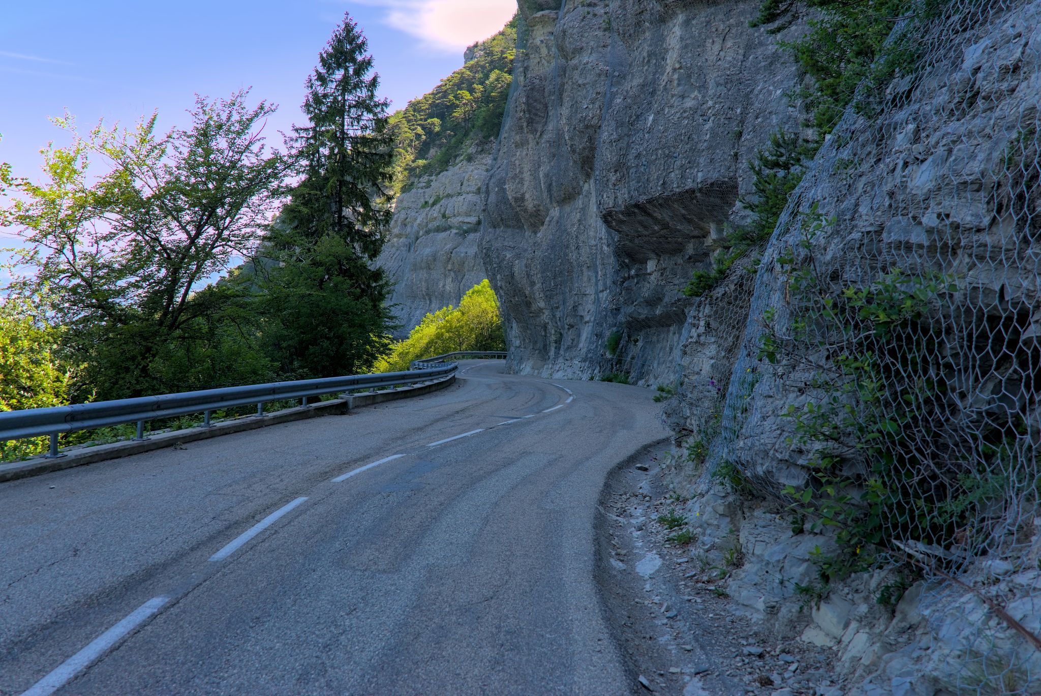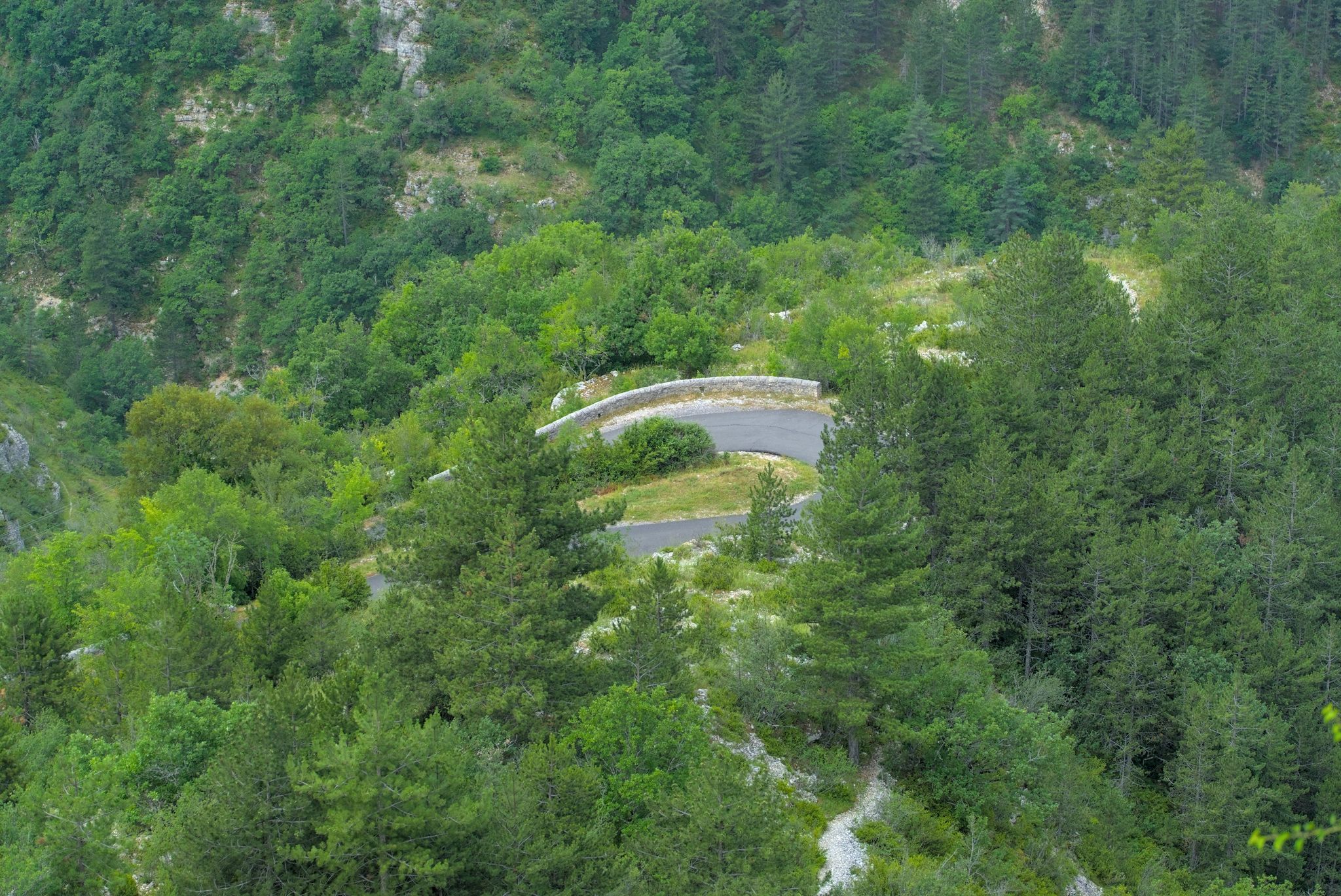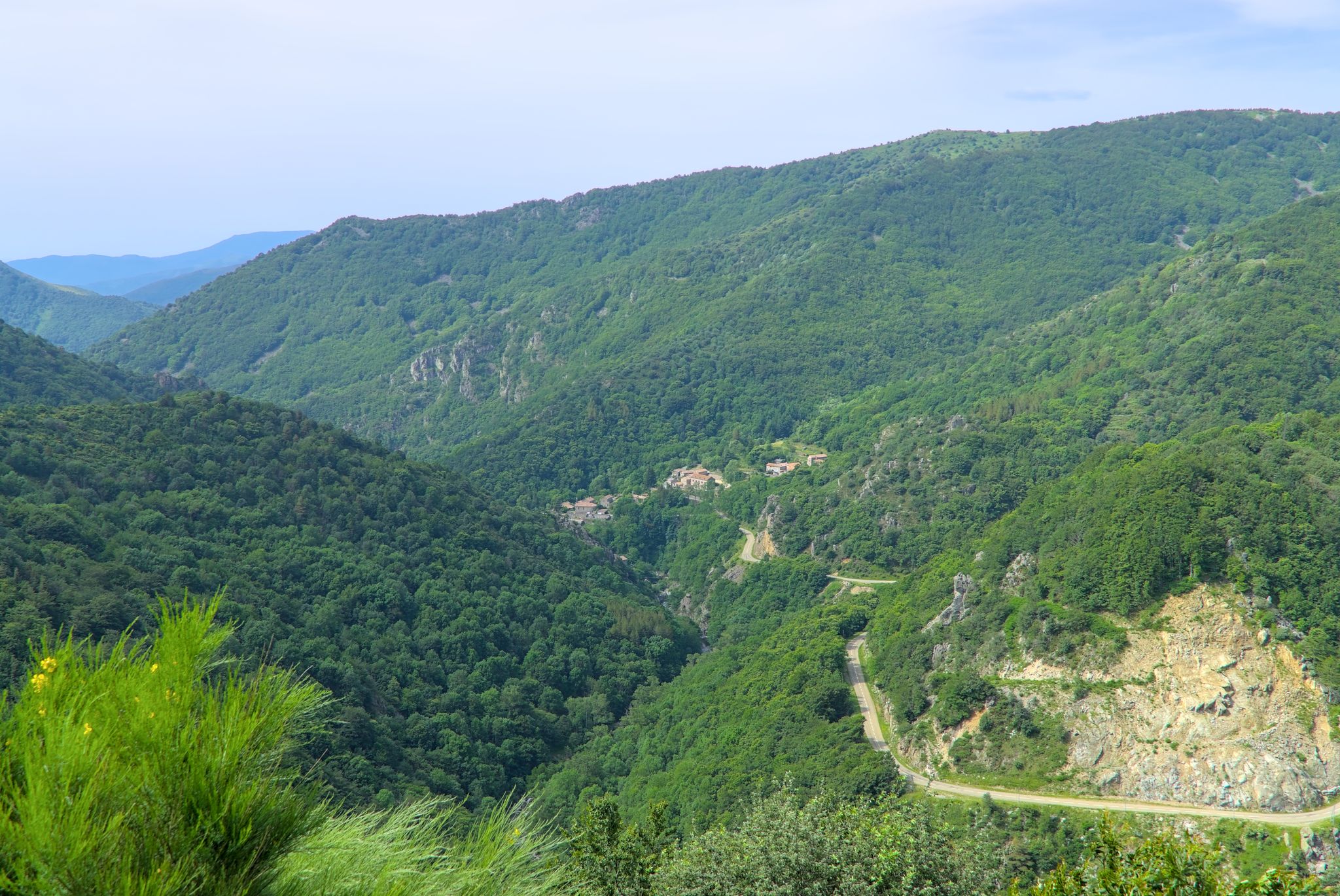 Kleines schönes Sträßchen, welches sich die Berge hochschraubt mit den ersten tollen Ausblicke auf den Naturpark Ardeche.