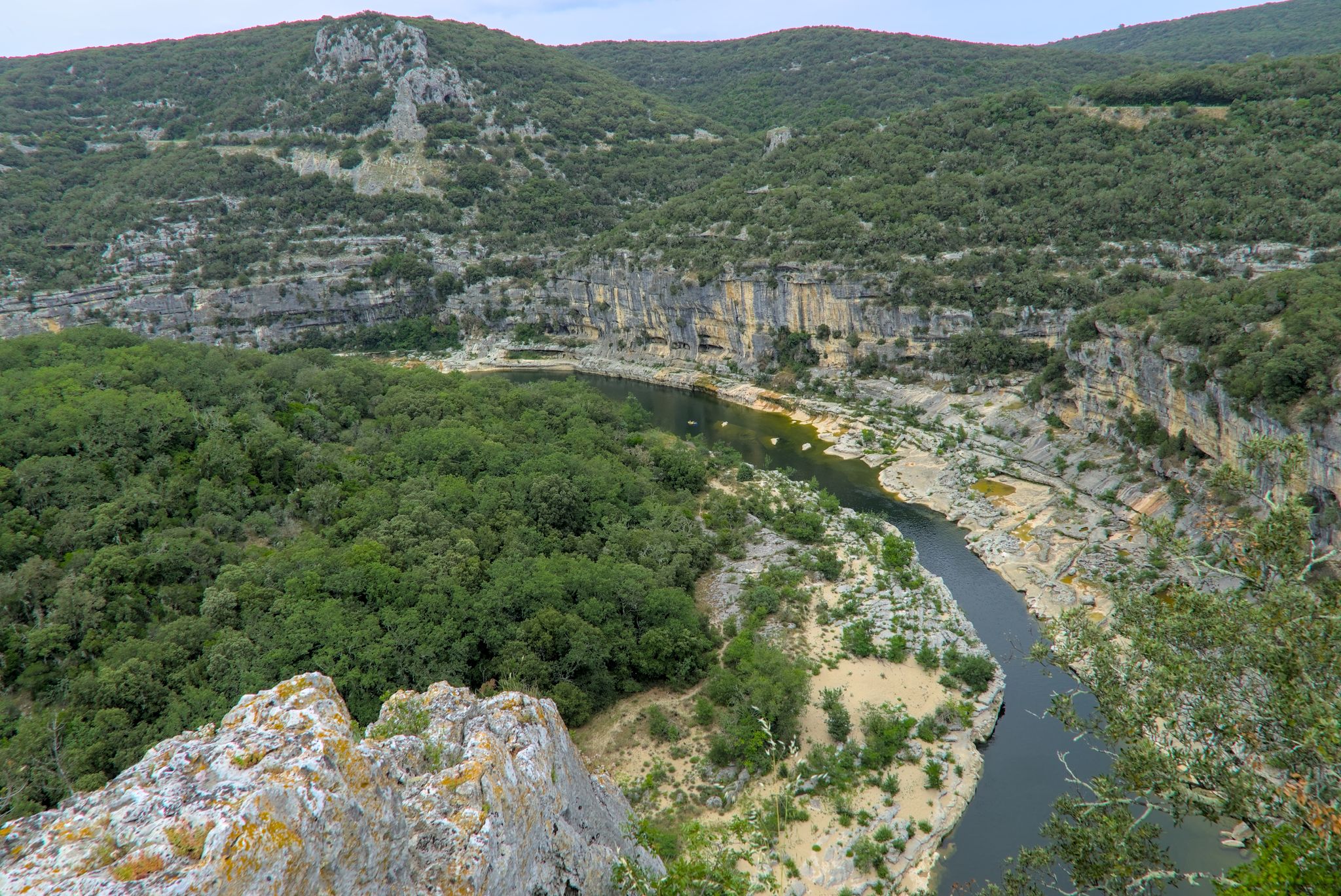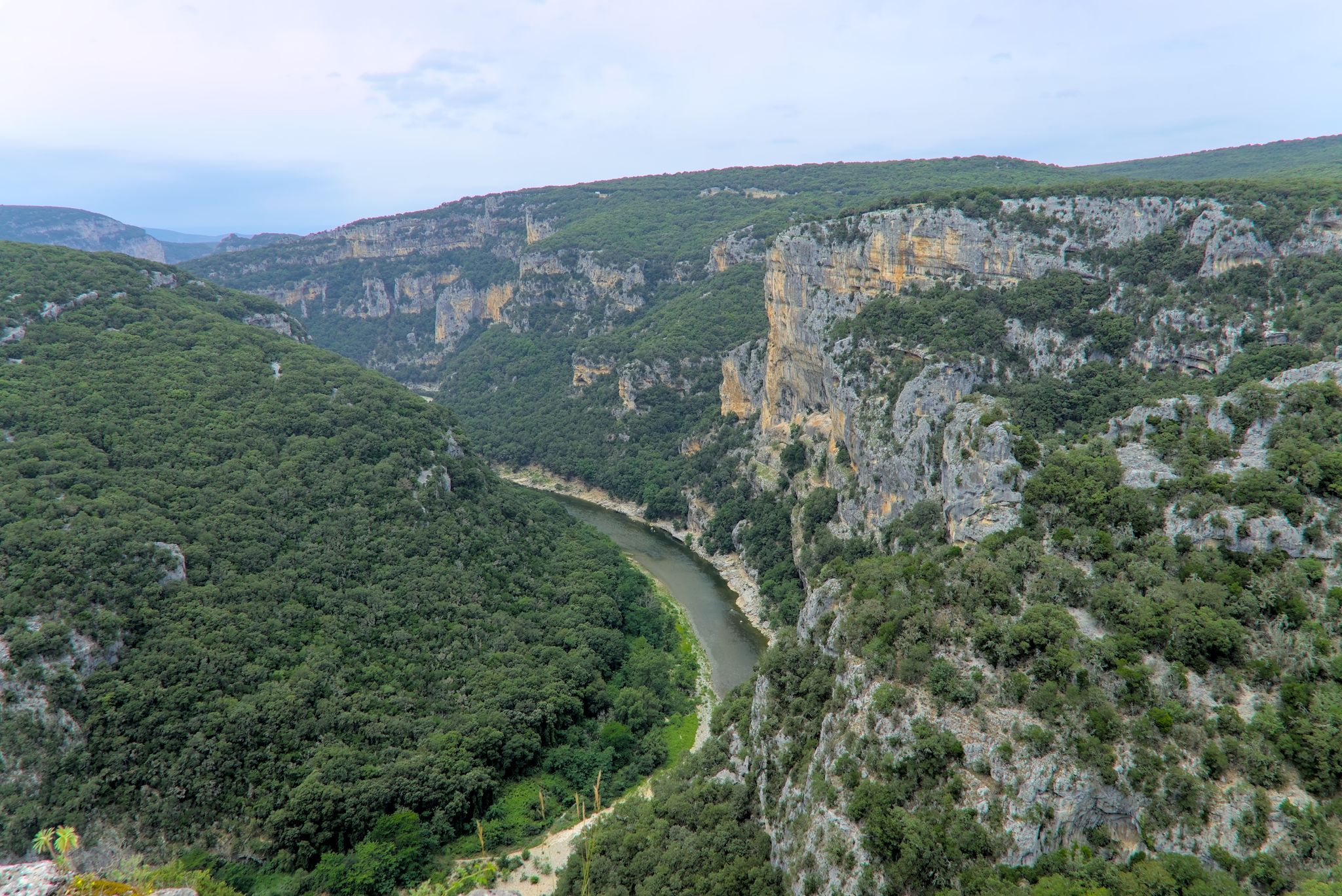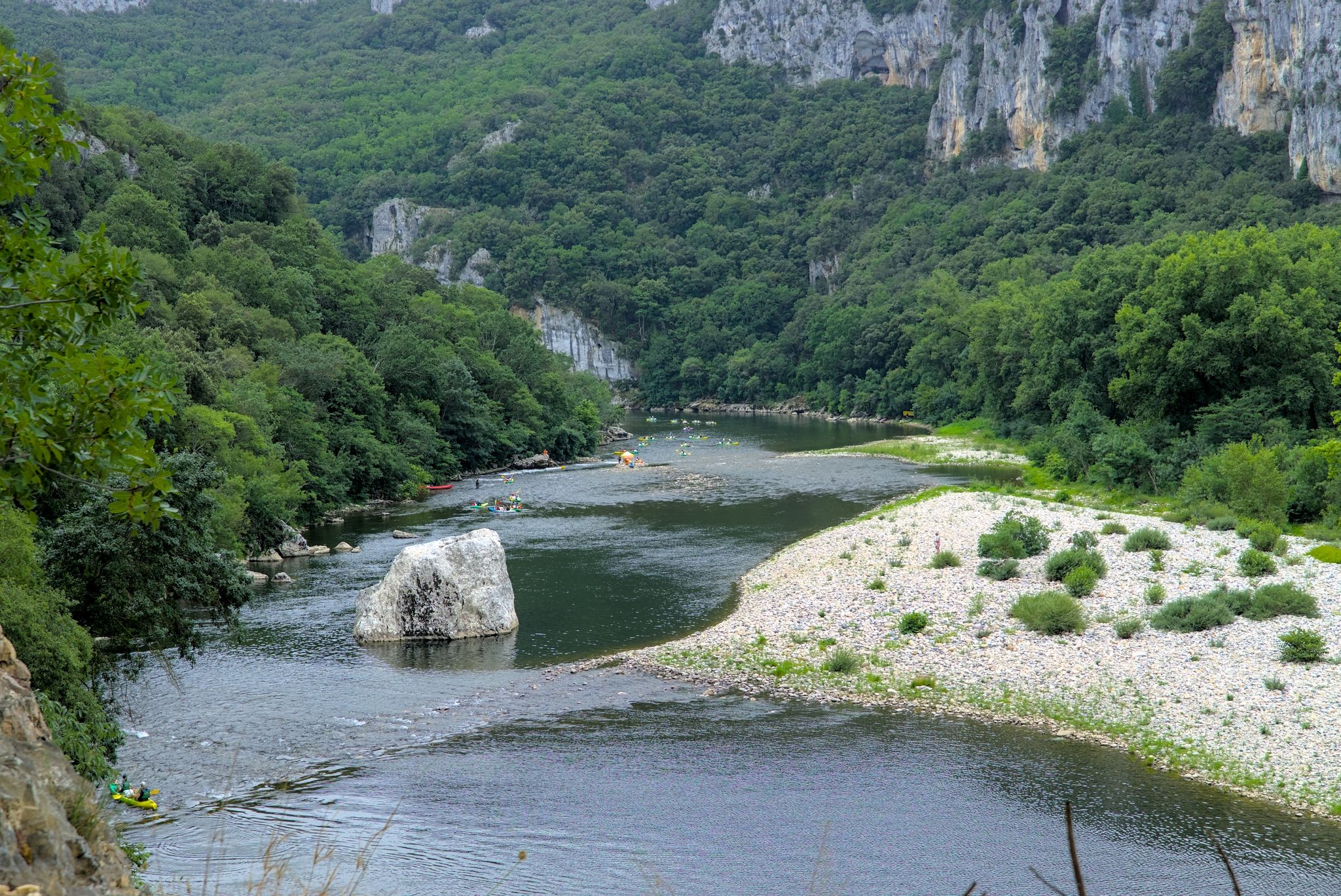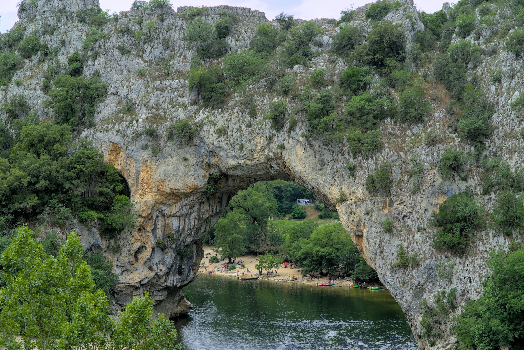 Das erste Highlight der Ardecheschlucht ist das steinerne Tor Pont d’Arc (G-Maps) Ardeche (Wikipedia).