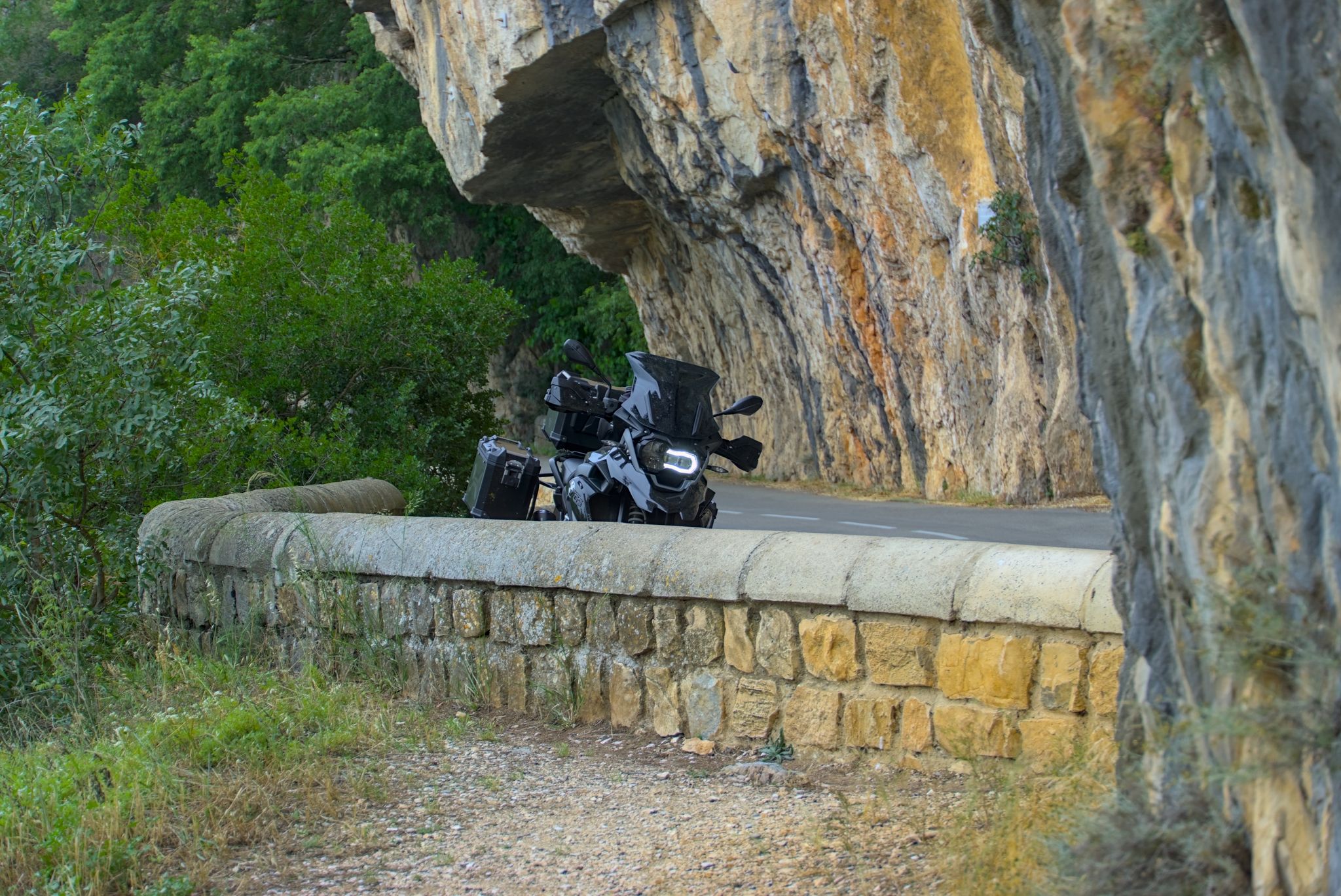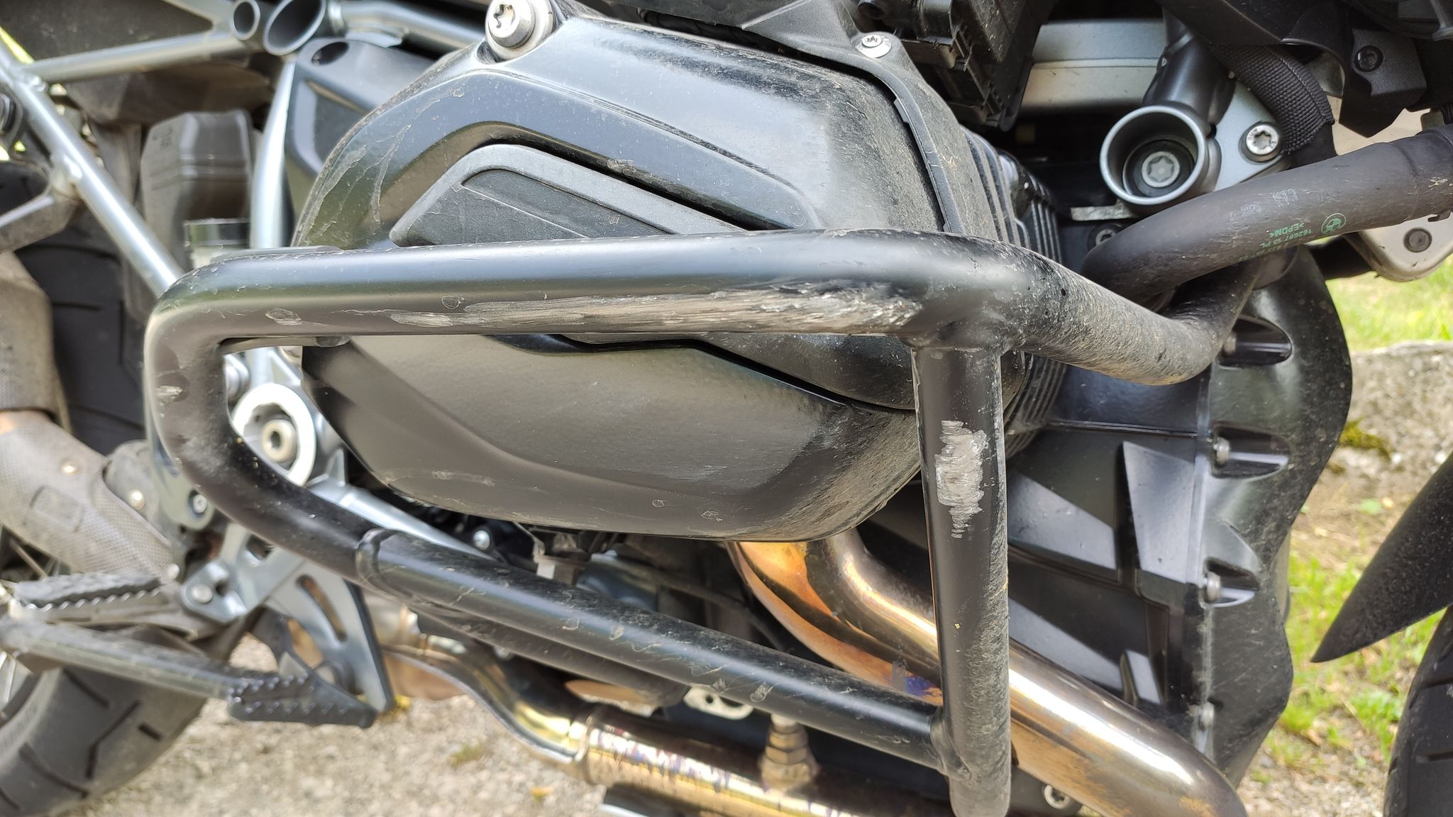 Auf dem Rückweg nach unten in die Tarnschlucht, ist in der letzten Kehre ein Malheur passiert. Richtig erklären kann ich es mir nicht, entweder war da ne heftige Spurrille oder wie fast überall, Split, welcher mich nach außen gegen die Stützmauer wie auf Schienen gezogen hat. Der Zylinderschutz war Gold wert, sonst wäre es vermutlich an dieser Stelle mit der Tour aus gewesen.