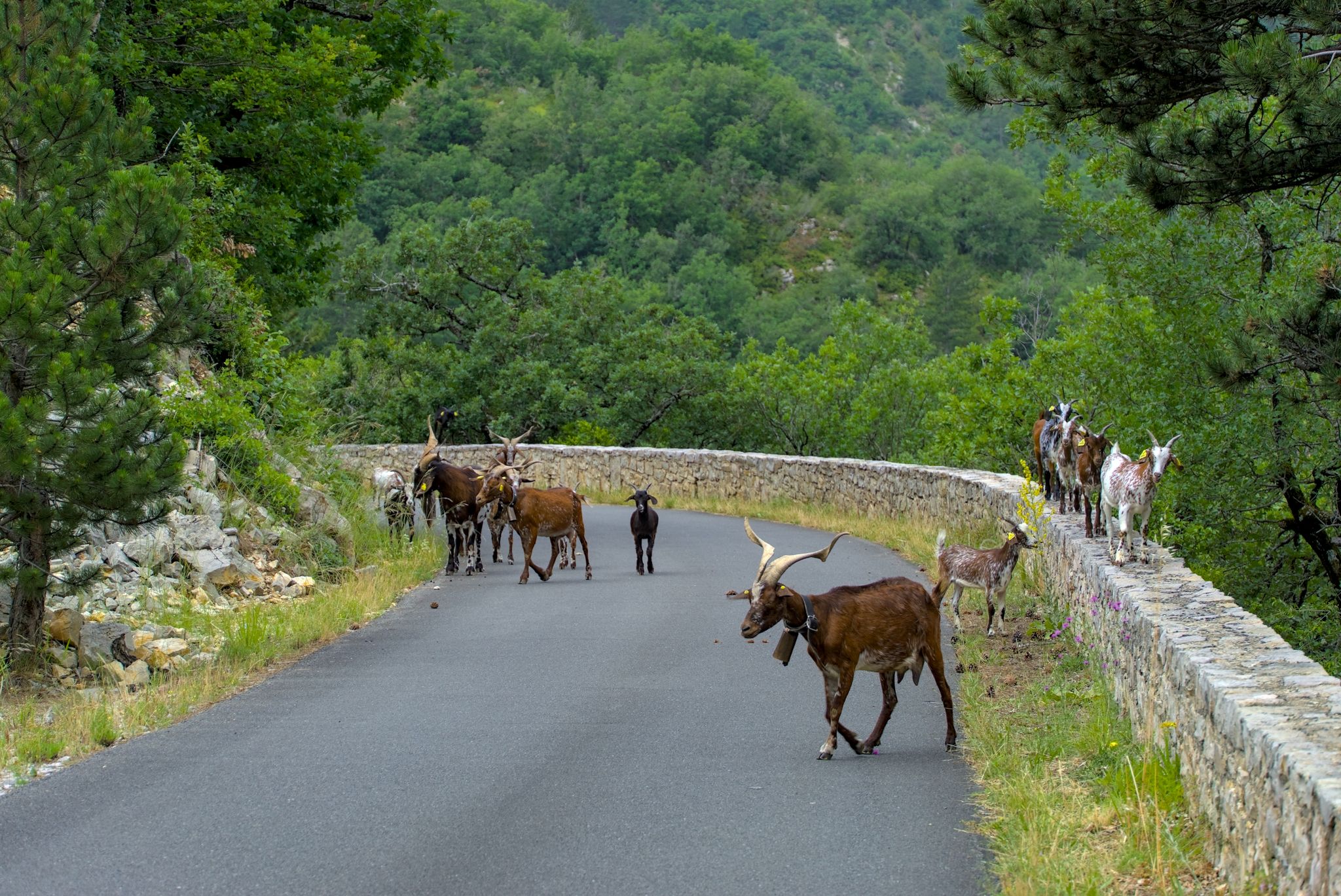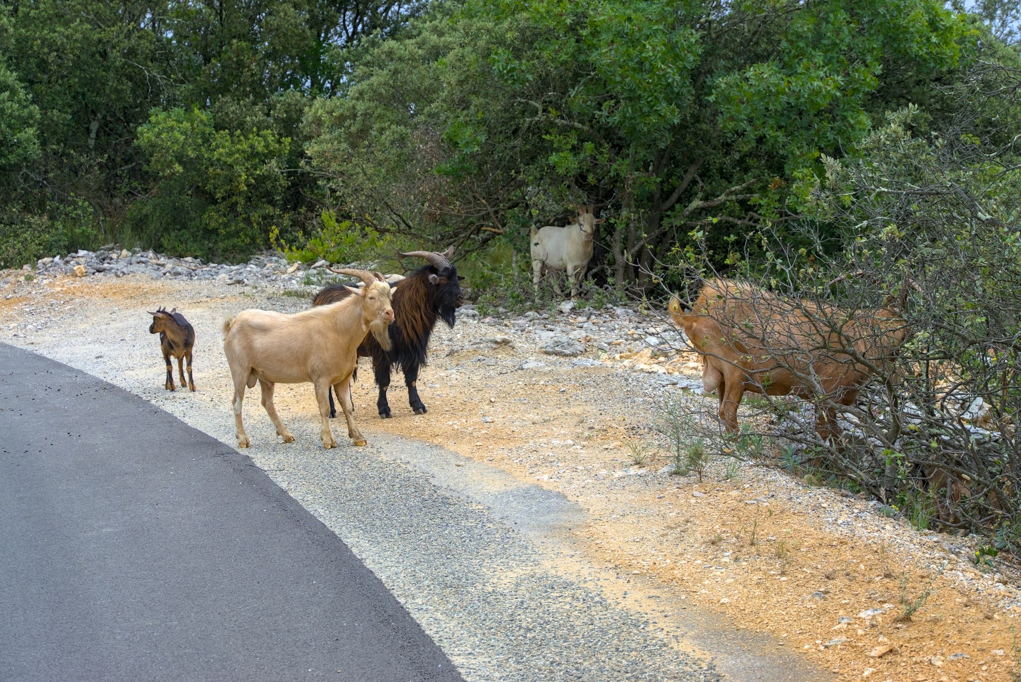 Einmal stand auch eine wilde Ziegenherde auf und neben der Fahrbahn.