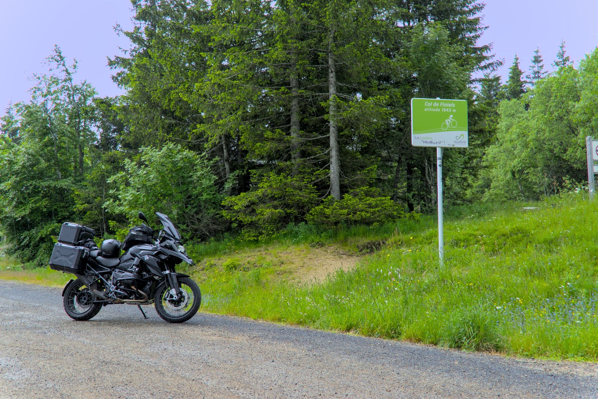 über Col de Finiels (13,5°C nach einem kurzen Schauer) in den Naturpark Cevennen, nach Le Pont-de-Montvert (G-Maps) am Fluss Tarn.