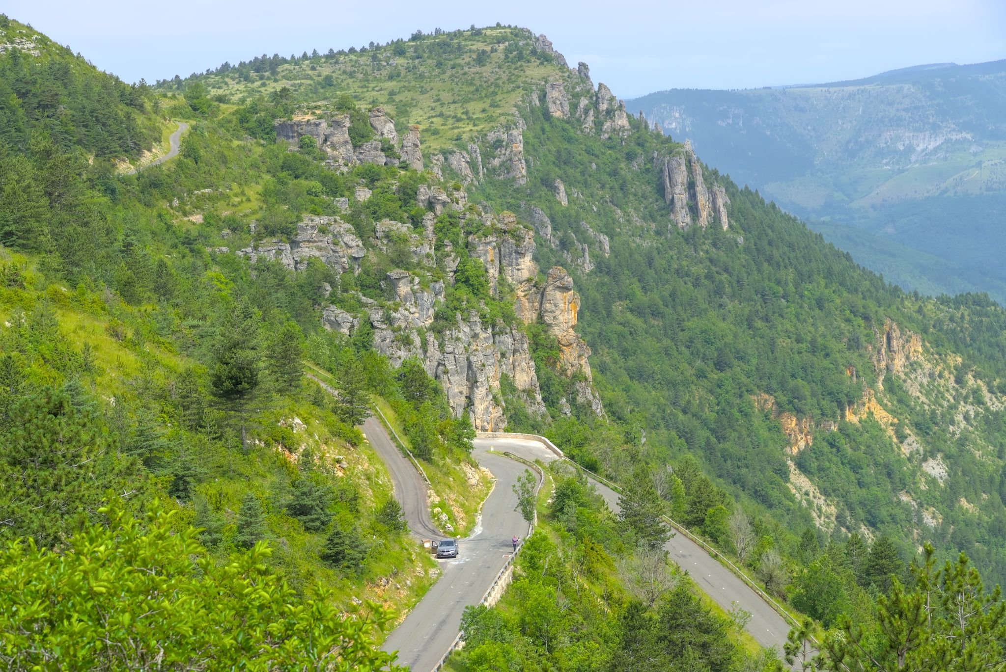 Die Strasse folgt weiter mit feinen Kurven der Tarn bis nach Florac. Dort erklimme ich das Hochplateau mit dem Col de Pierre Plate.