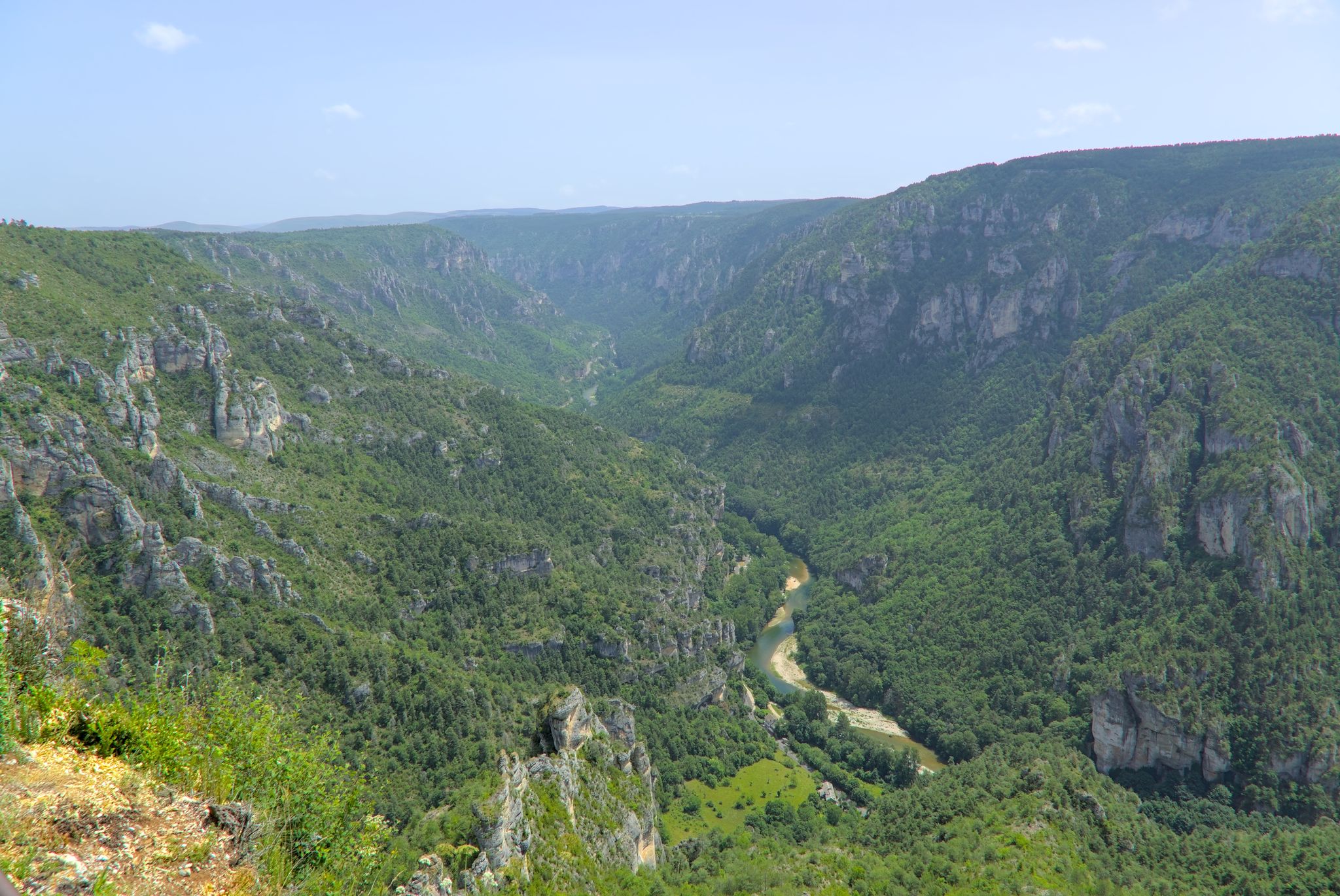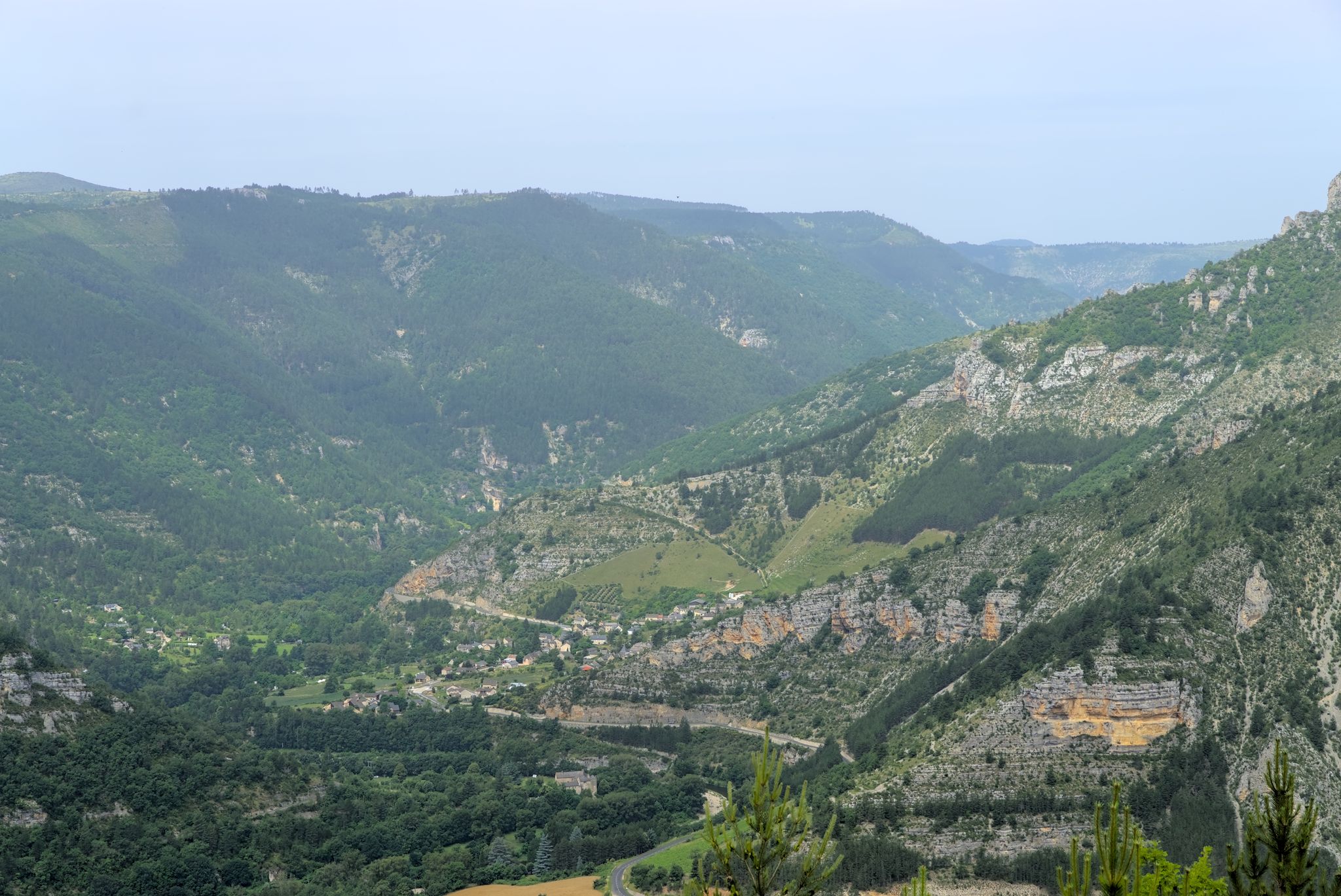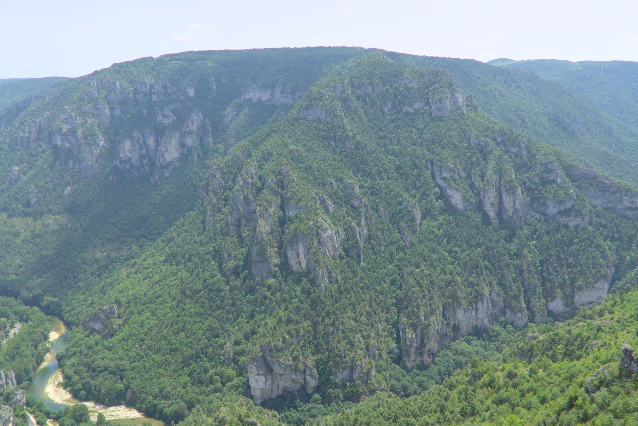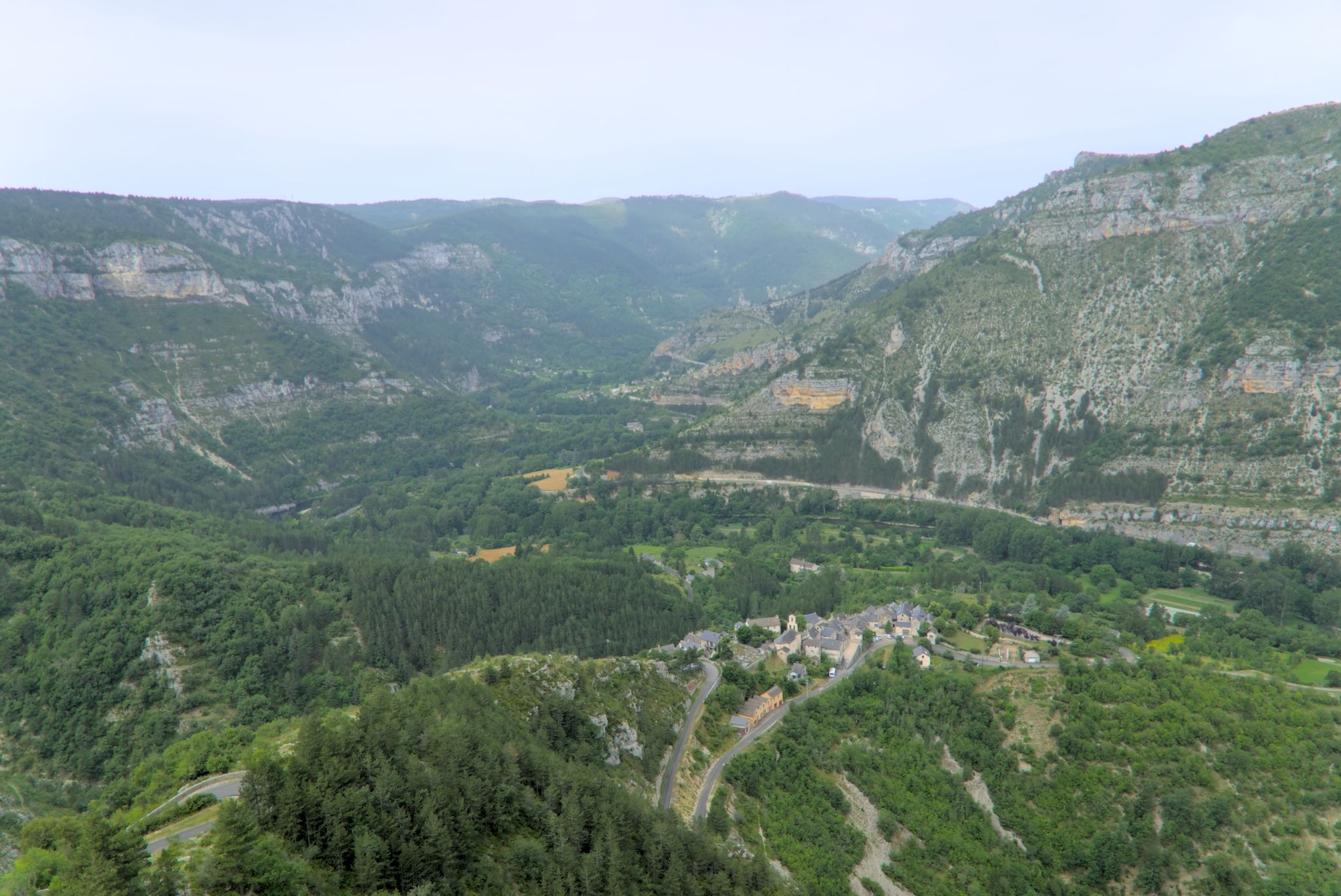 Ich fuhr nach unten und folgte einer Weile der Tarn um dann wieder auf das Hochplateau zu fahren zum Col de Coperlac. Dazwischen gab es noch einen Panoramapunkt, Le Saltadou : Panorama du cirque de Saint Chély du Tarn (G-Maps).