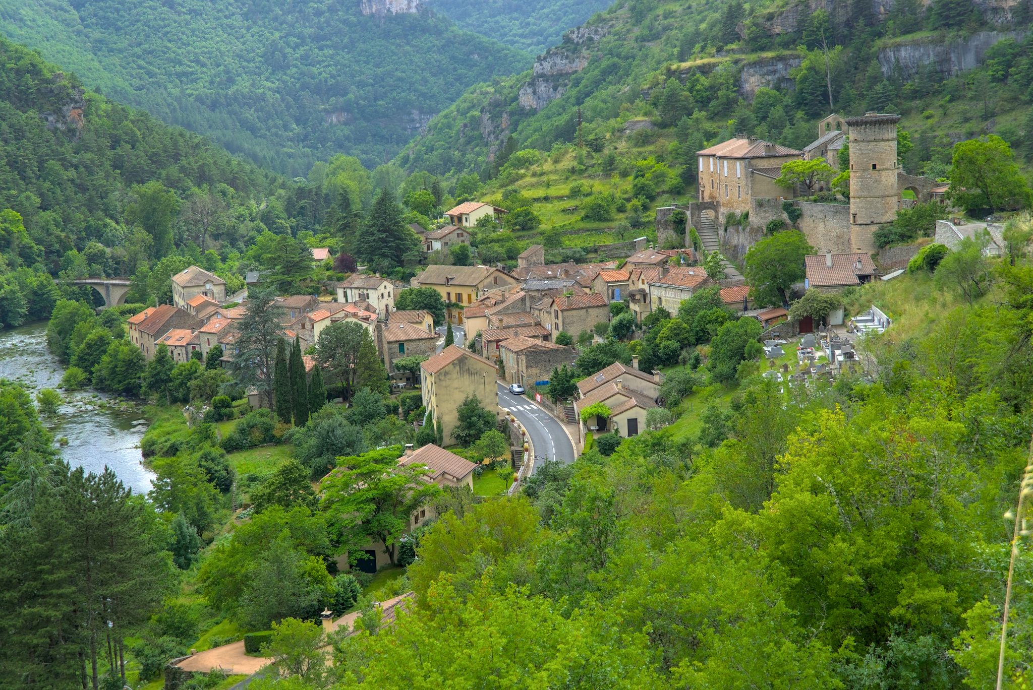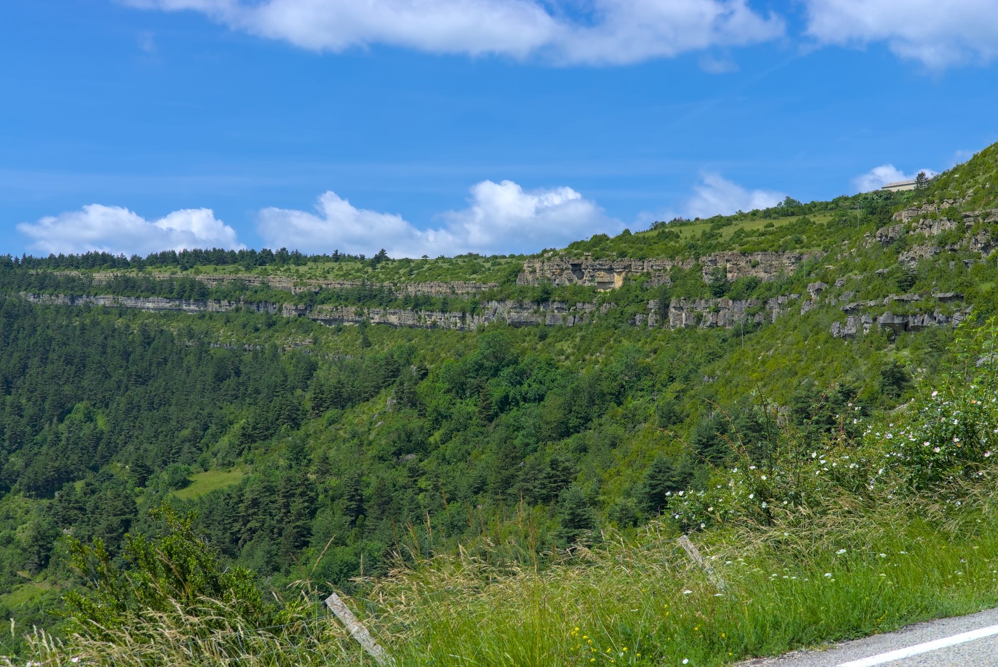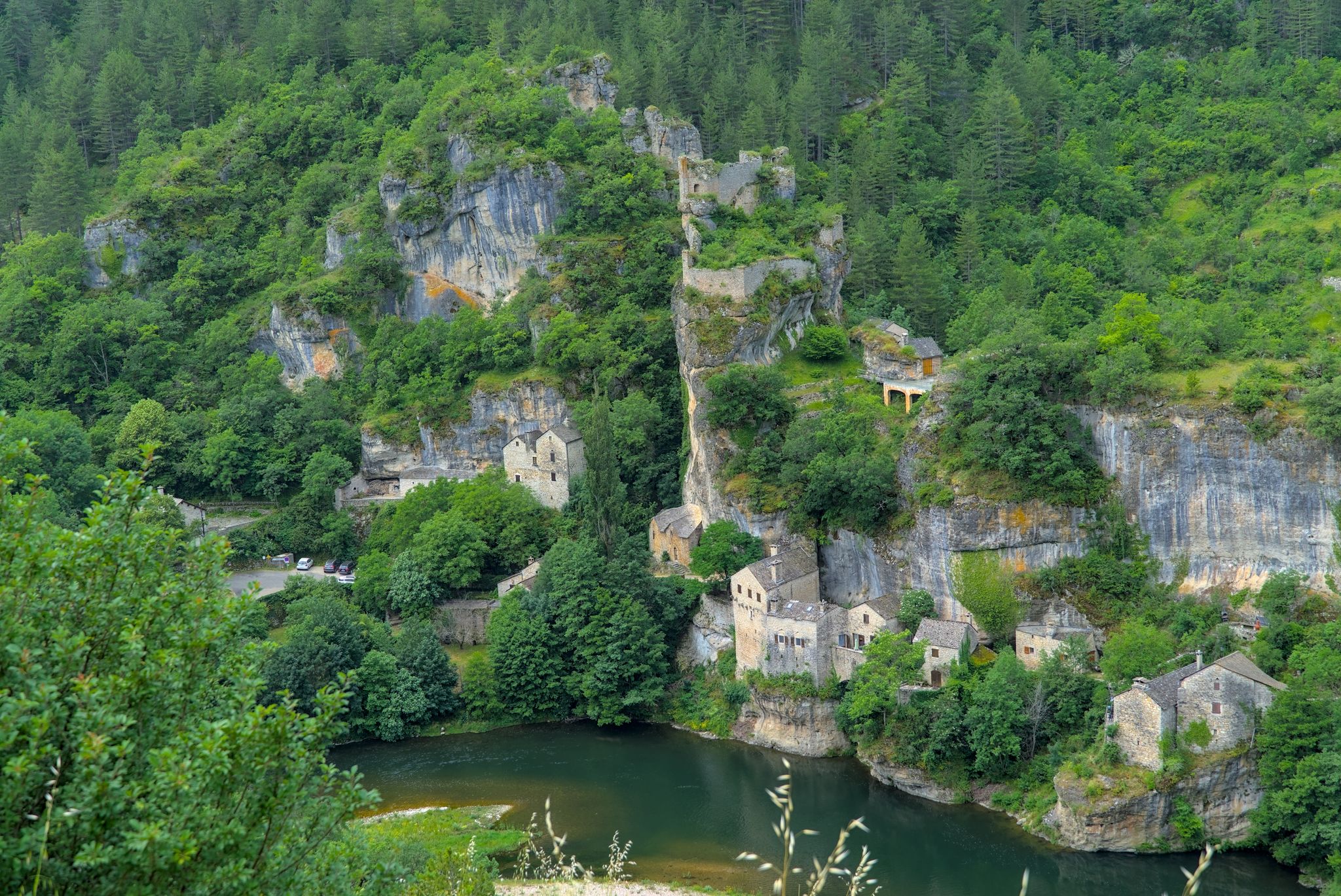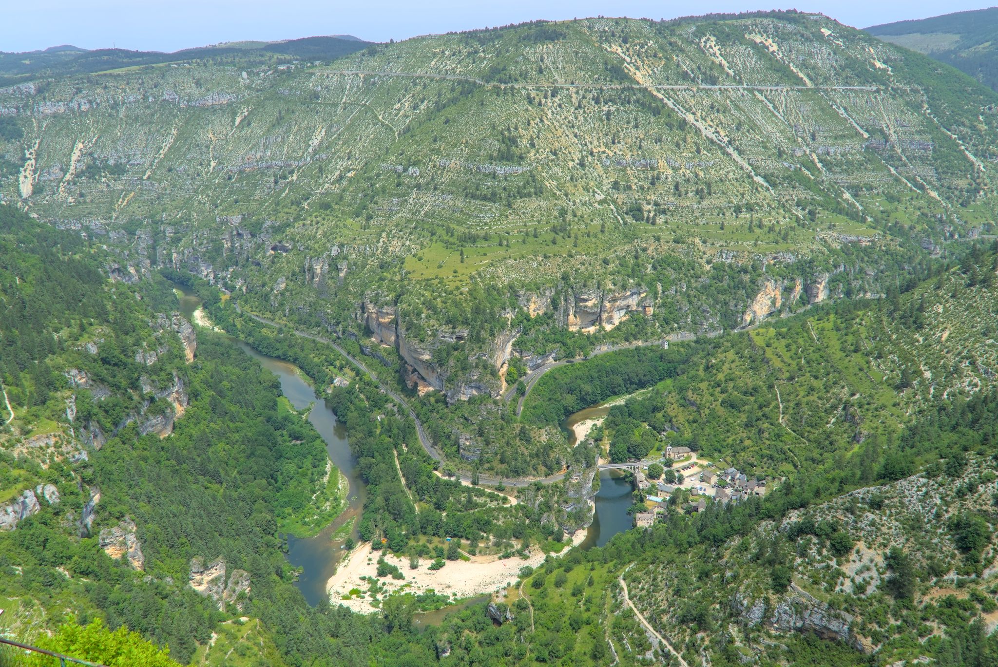 Ich fuhr nach unten und folgte einer Weile der Tarn um dann wieder auf das Hochplateau zu fahren zum Col de Coperlac. Dazwischen gab es noch einen Panoramapunkt, Le Saltadou : Panorama du cirque de Saint Chély du Tarn (G-Maps).