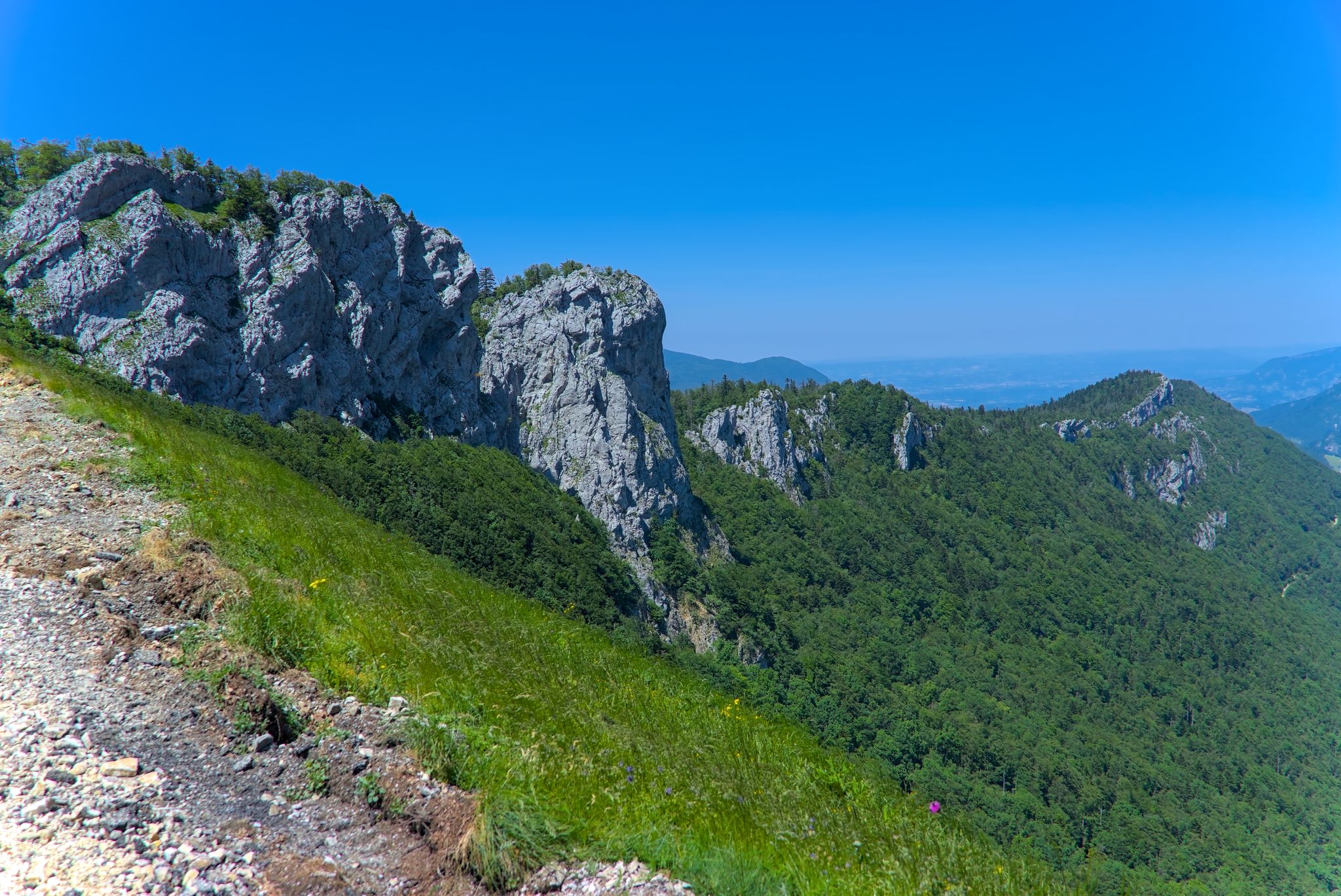 Der größte Col ist dort der Col de l’œillon. Von dort hat man eine gute Aussicht ins Rhonetal bis zu den Alpen, wenn es nicht so diesig wäre.