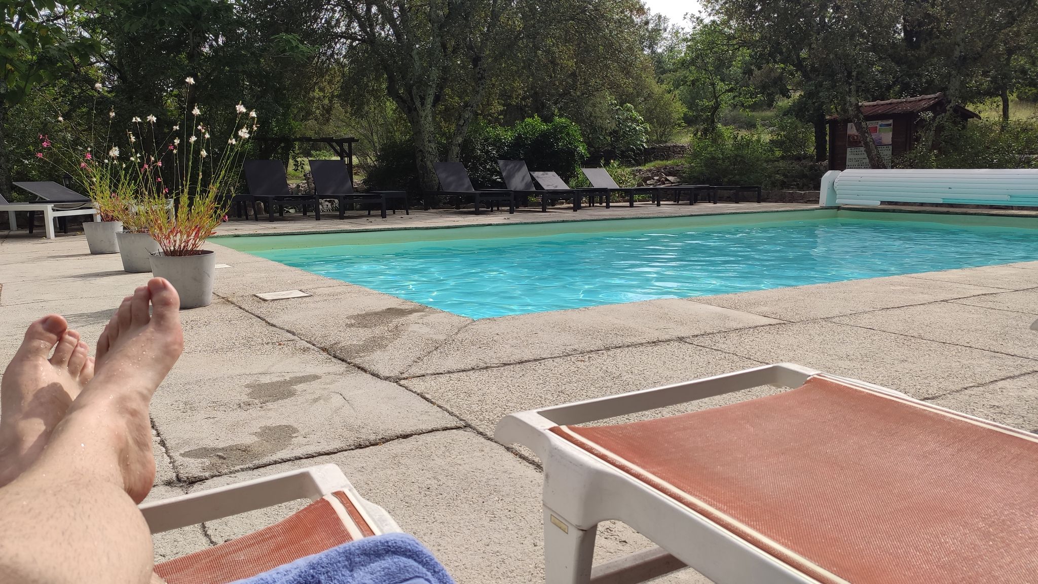 In der Nähe von Les Vans habe ich mich nach einer Unterkunft umgeschaut. Da es sehr warm war mit knapp 32°C, hat das Hôtel le Mas de l’Espaire (G-Maps) mit Pool gelockt. So konnte der Tag ausgeklungen werden.