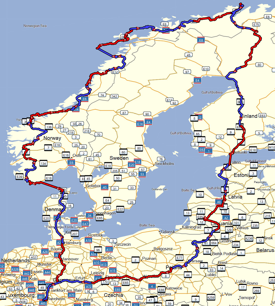 Der Countdown lief, wir wurden langsam nervös. Letzte Detailplanungen an den Routen: vom norwegischen Südkap an das Nordkap. Rückweg über Finnland bis Rovaniemi und dann zwei Optionen: entweder über Schweden oder das Baltikum nach Hause. Diese Option ließ ich offen und wollte das dann spontan entscheiden, was eine gute Idee war.