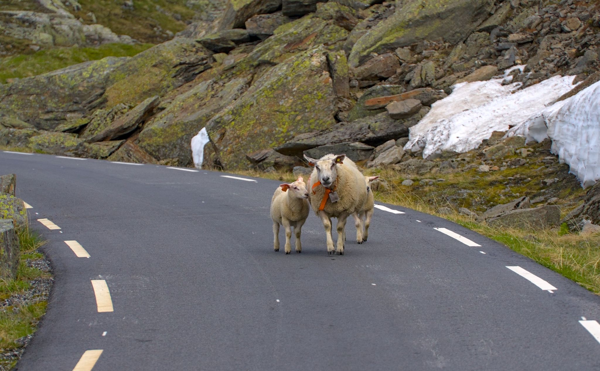 Überall waren freilaufende Schäfchen zu entdecken. Viele lagen auch direkt neben der Fahrbahn, die waren aber total cool und haben sich durch die Q nicht stören lassen.