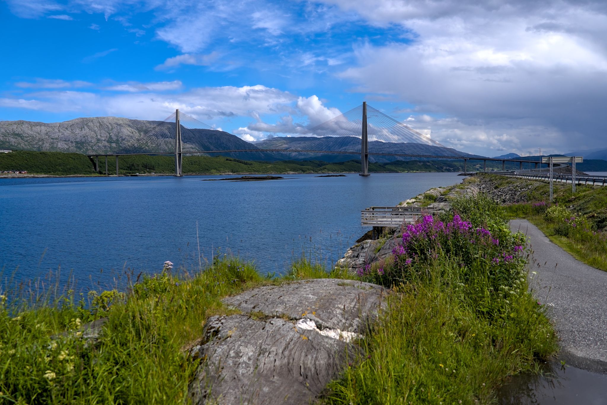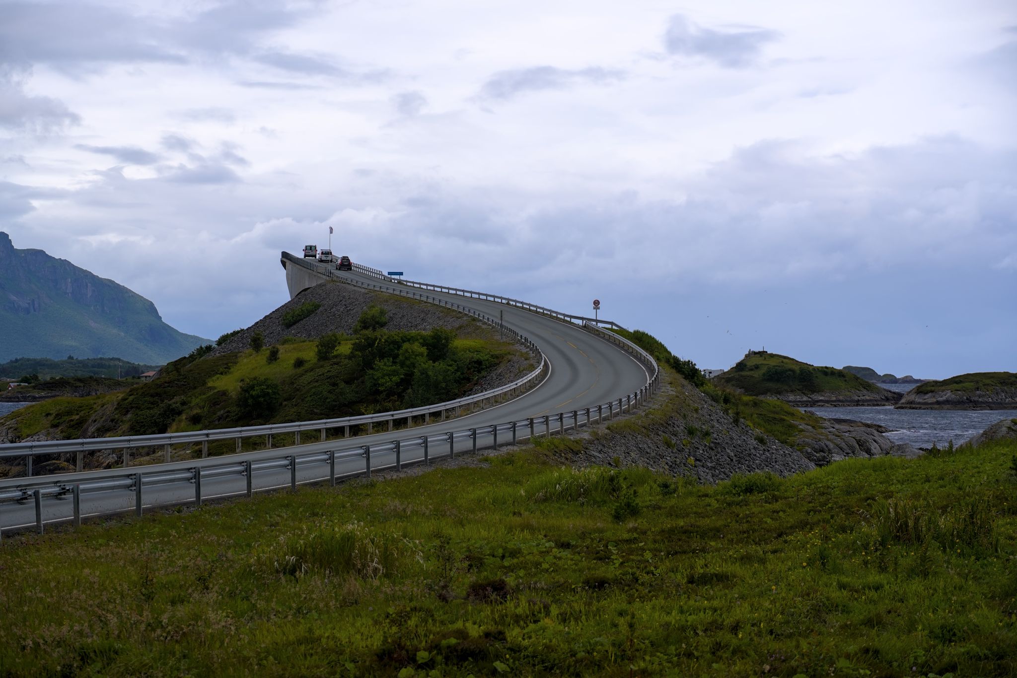 An der Atlanterhavsveien (Atlantikstraße) herrschte ein starker, böiger Wind, so das die Q ziemlich schräglage hatte. Es waren nur noch 13°C. Dennoch war es ein einzigartiges Erlebnis, dort entlang zu fahren.