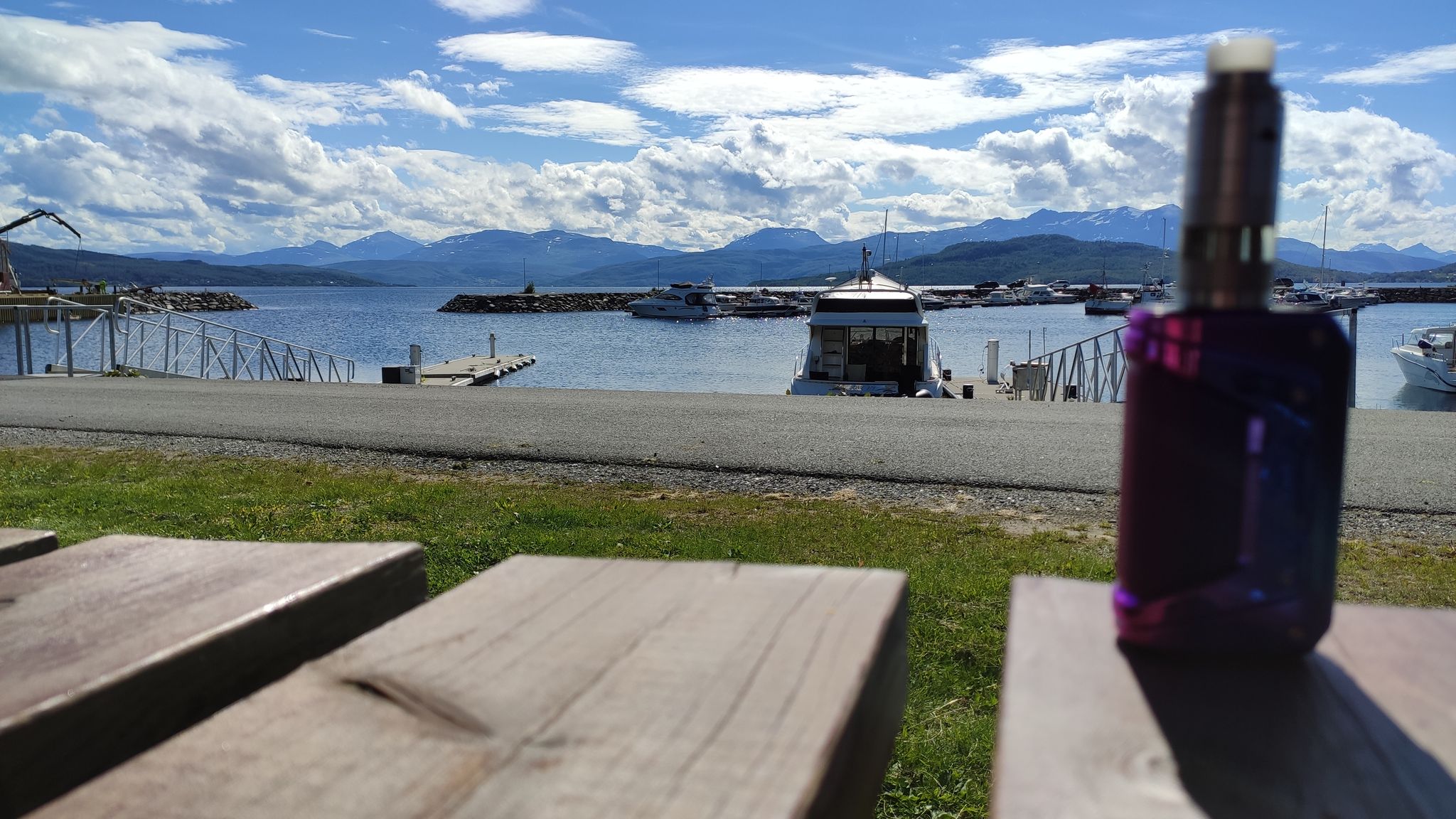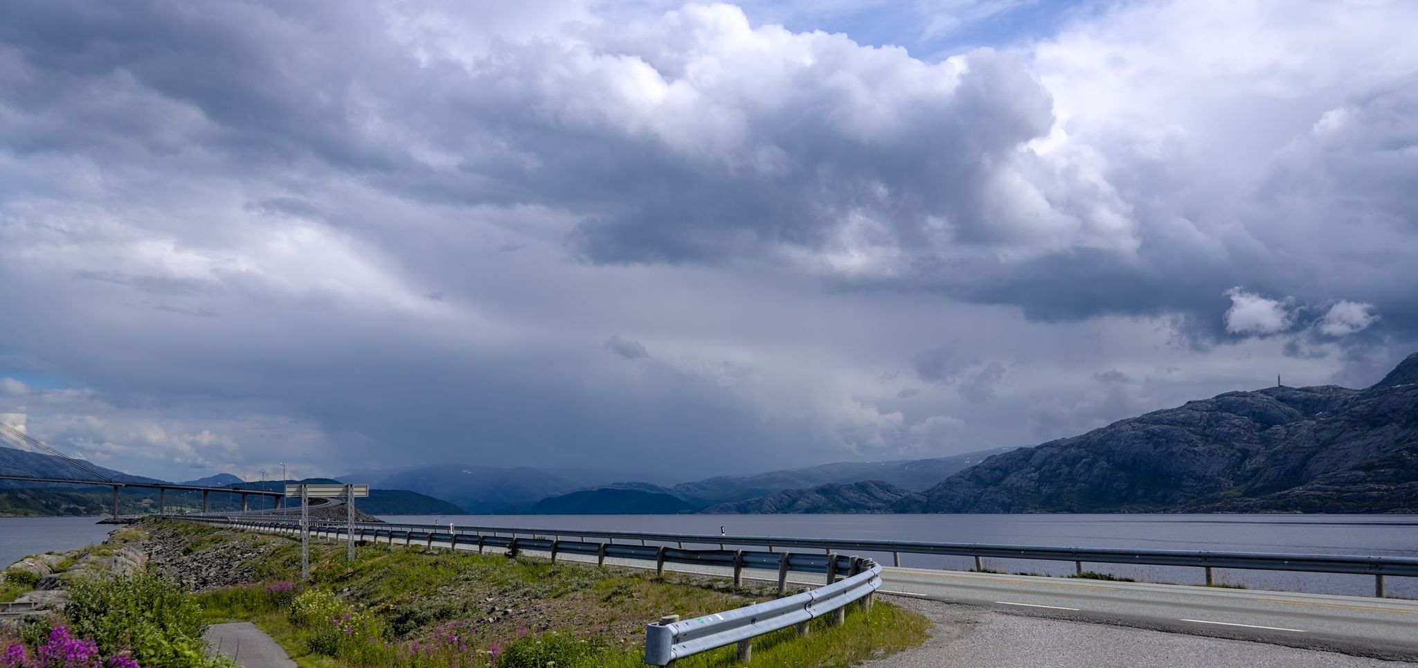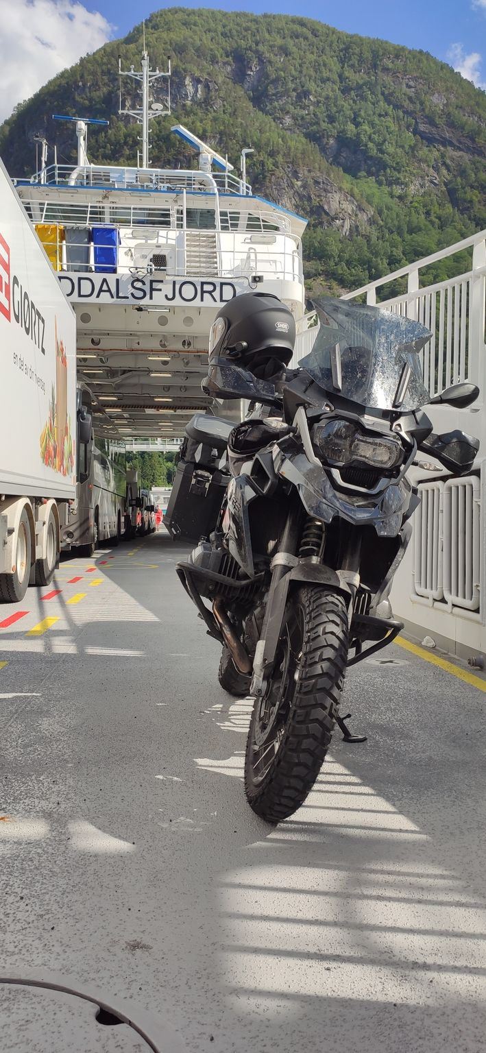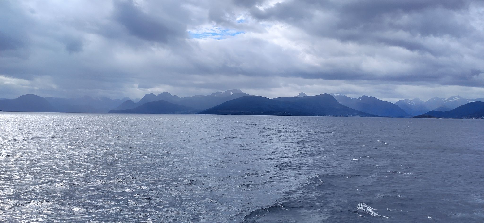 Die Fahrt ging direkt vom Camping Platz zum Fähranleger bei Vestnes. Von dort setzten wir nach Molde über um zur Atlantikstraße zu fahren. Während der Überfahrt konnten wir die dicken Regenwolken sehen, welche sich da breit machten, wo wir herkamen. Zum Glück folgten sie uns nicht.