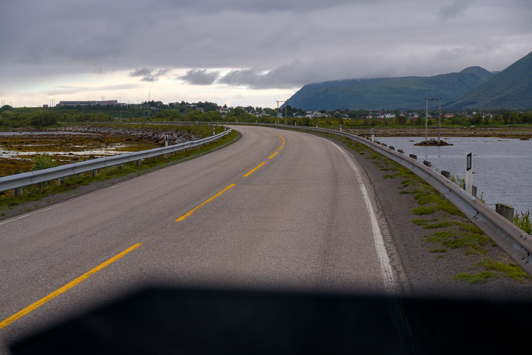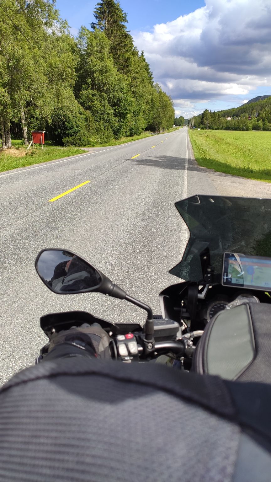 Bei den Massen an Fahrzeugen der Fähre, dachte ich, oje, das wird ein Spaß in Norwegen. Ein WoMo nach dem anderen. Nach dem Entladen gab es noch ein kurzes Geknubbel im Hafen und auf einmal waren wir so gut wie alleine auf der Straße.