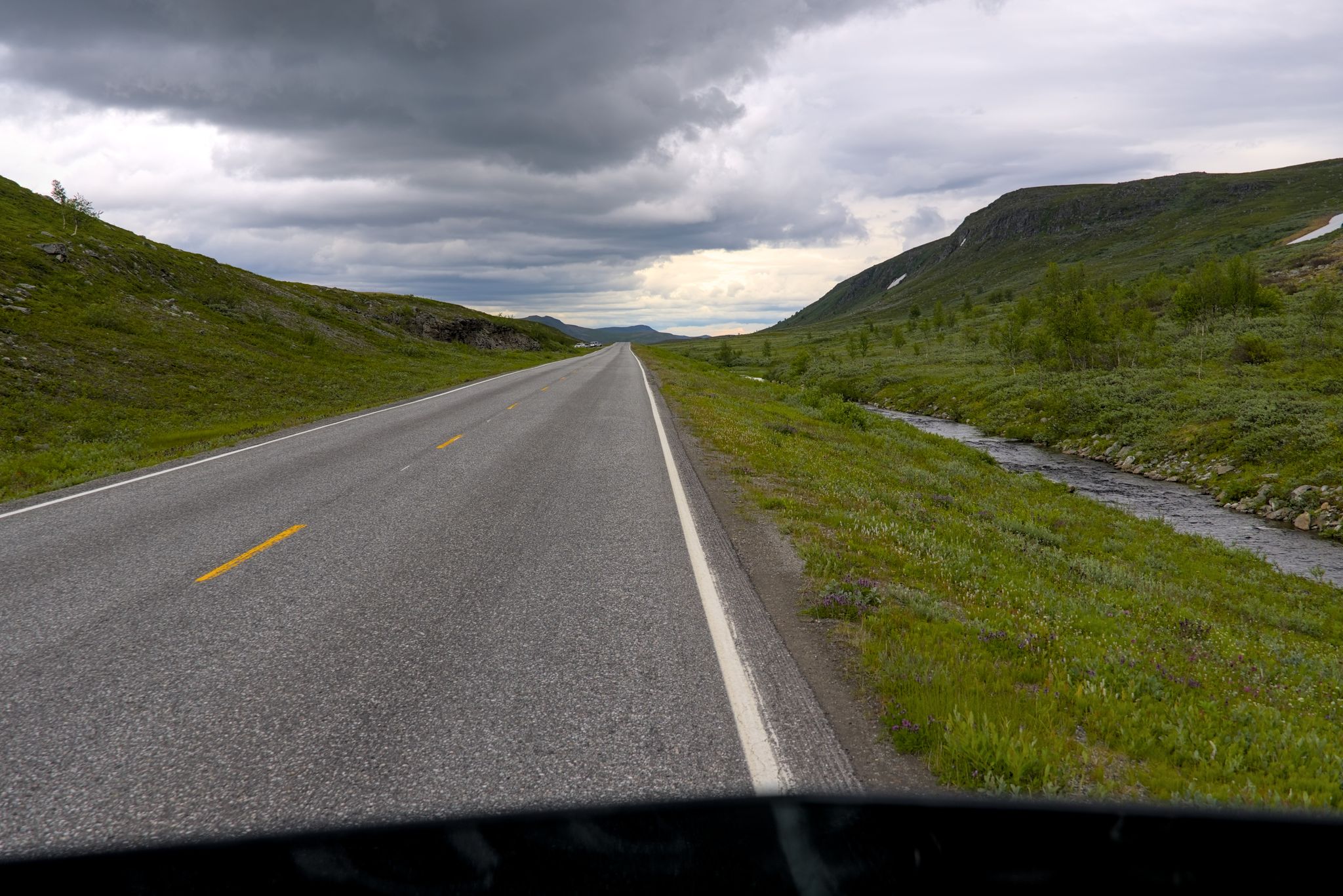 Das Wetter war an diesem Tag ebenfalls TipTop, bis knapp über 30°C in den Tälern. Da kamen die Fjells dazwischen gerade recht, um wieder etwas abkühlen zu können.
