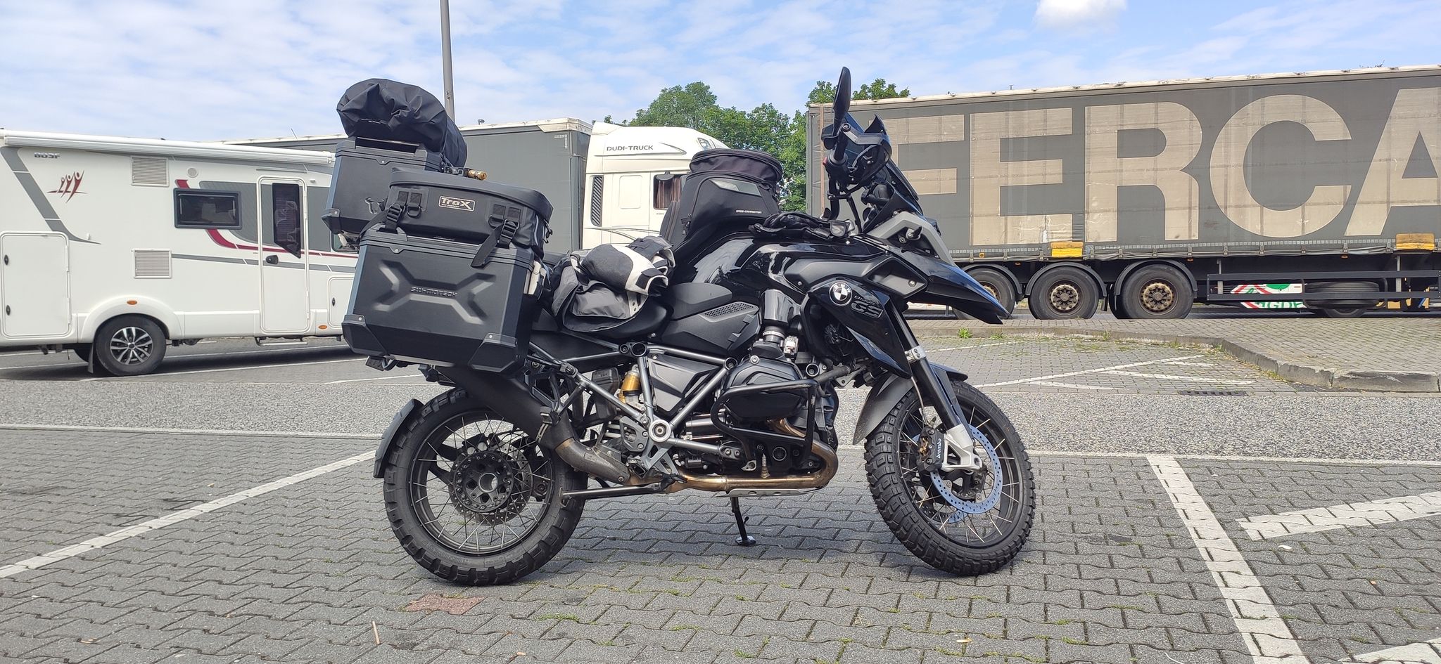 Einige Wochen vor dem Urlaubsstart erstellten wir eine Packliste, mit allem was wir mitnehmen wollten. Da meine Frau sich entschieden hatte, als Sozia mit zu fahren, aufgrund der großen Strecke, war der Platz natürlich begrenzt (Liste am Ende des Berichts). Rechter Koffer für meine Frau, linker Koffer für mich, Topcase mit allerlei wie Notebook, Medikamente. Tankrucksack für die Kamera, Wasser, Dampfzeugs. Rolle für Schlafsäcke und Schuhe. Eine Kofferaufsatztasche für die Regenklamotten und die andere blieb leer für Einkäufe unterwegs.