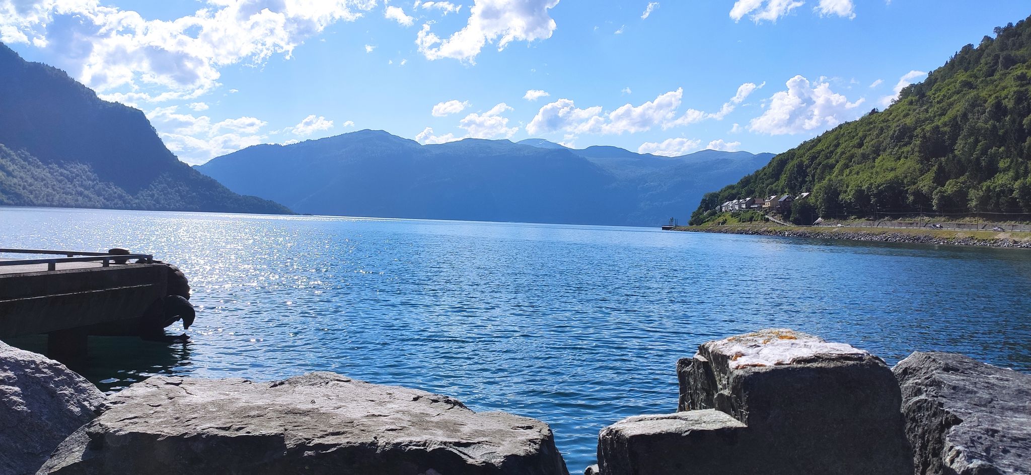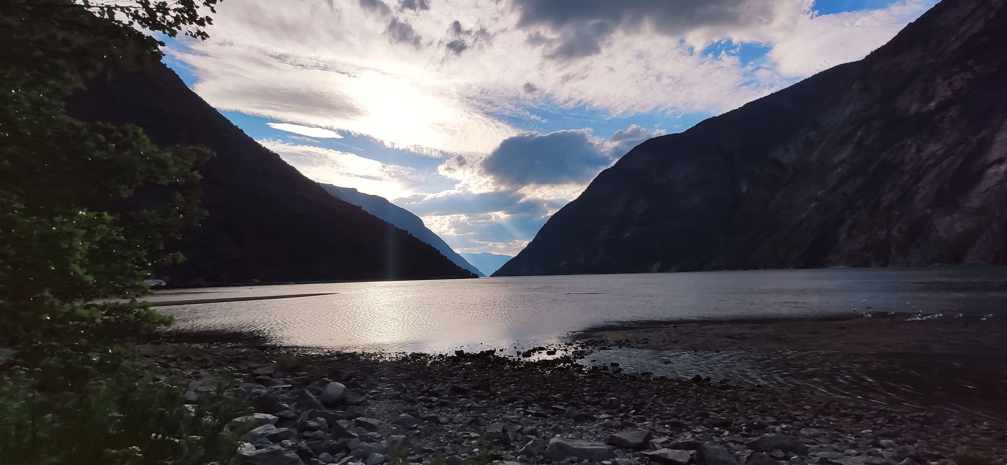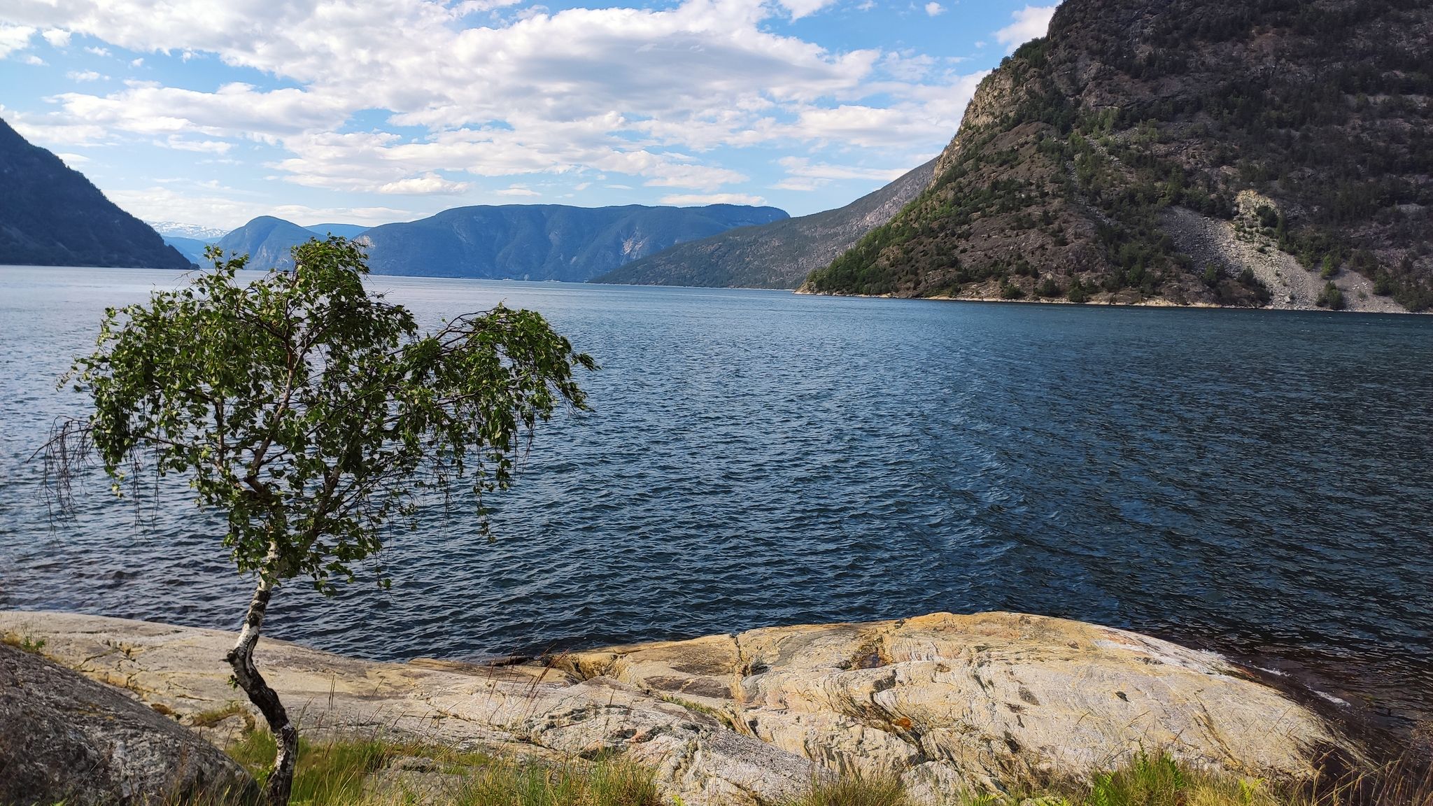 Leider war die Straße zum Stalheimskleiva gesperrt und so mussten wir weiter auf der E16 bleiben, durch den Gudvanga Tunnel, welcher uns dann am Aurlandsfjord ausspuckte.