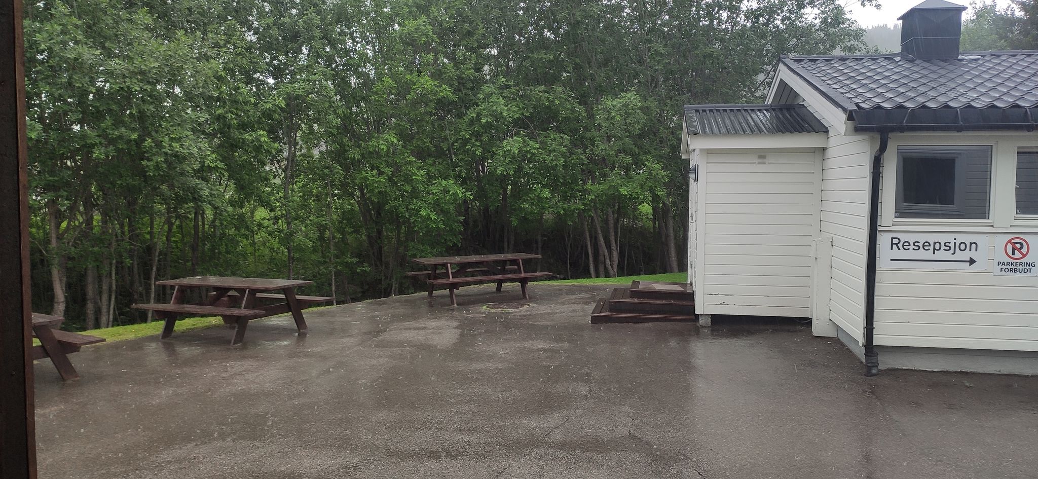 Bei Holm ging es wieder auf die Fähre nach Vennesund. Dort fragten wir auf dem gleichnamigen Campingplatz Vennesund Camping nach einer freien Hütte.