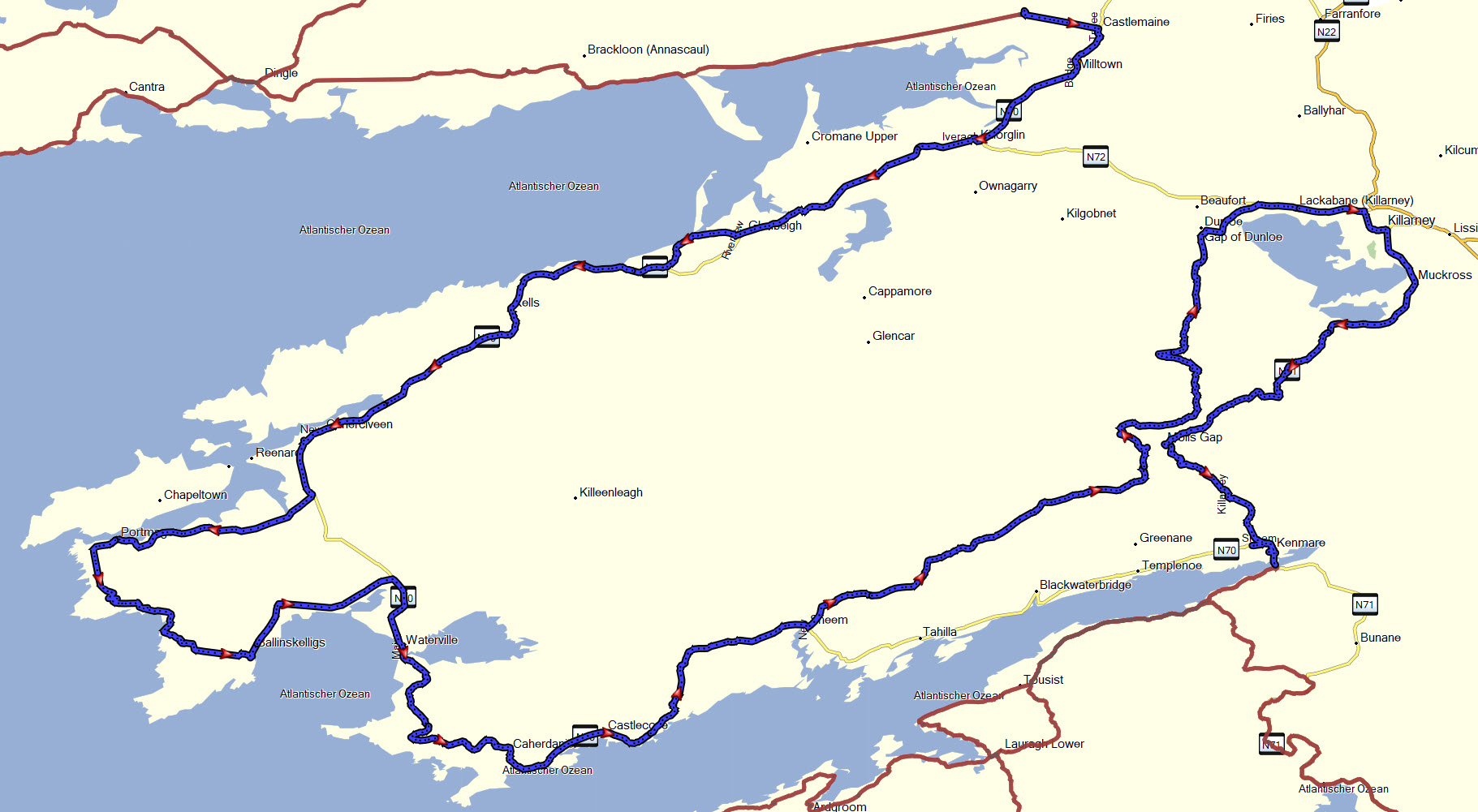 Es wurden diverse YouTube Videos angesehen und Reiseberichte gelesen. Falls Routen vorhanden, heruntergeladen und gesichtet. Der Listenordner Irland in Basecamp füllte sich alsbald rasch mit POIs und einigen Routenbeispiele.