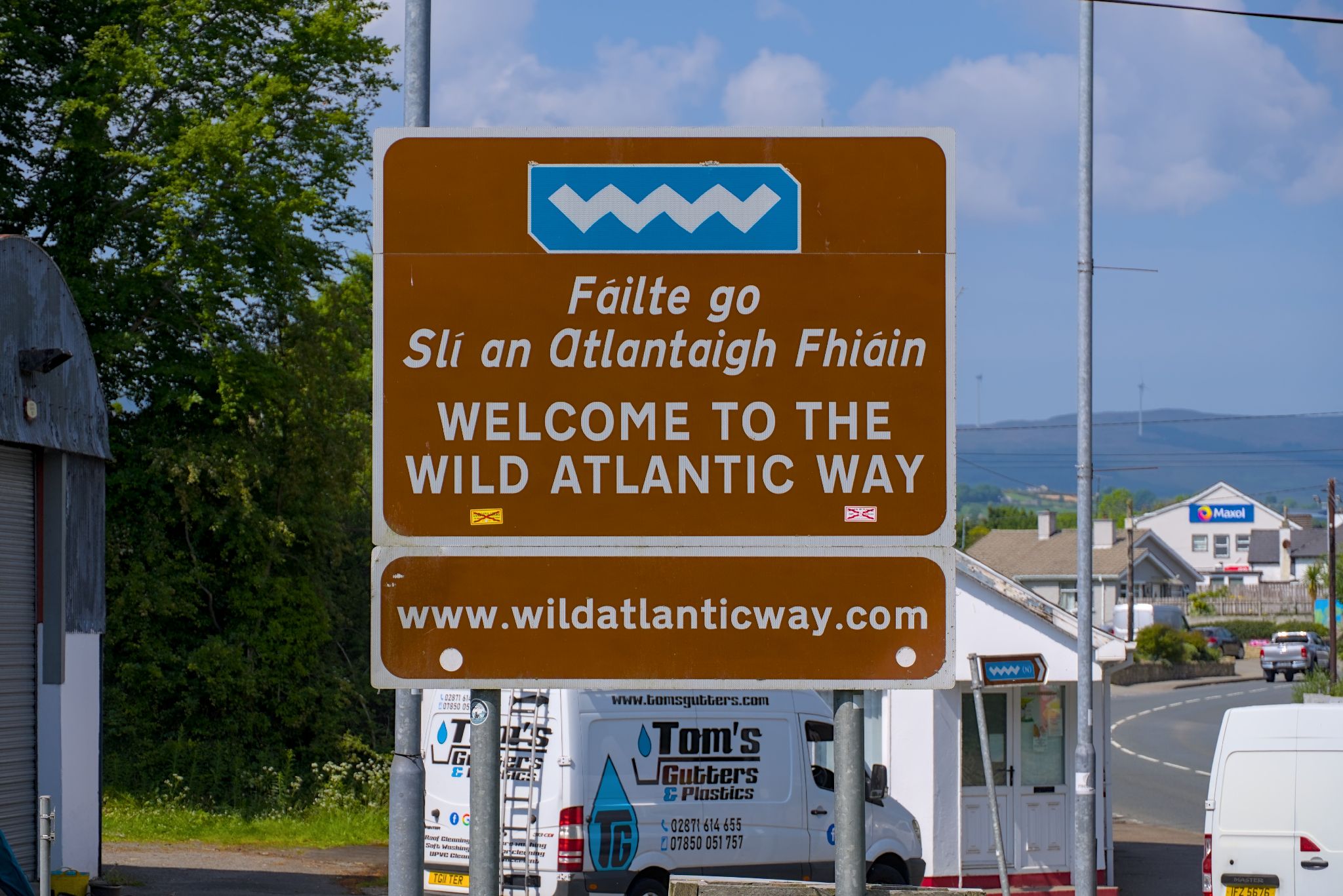 Kurz darauf das offizielle Schild: hier startet der Wild Atlantic Way offiziell von Nord nach Süd.