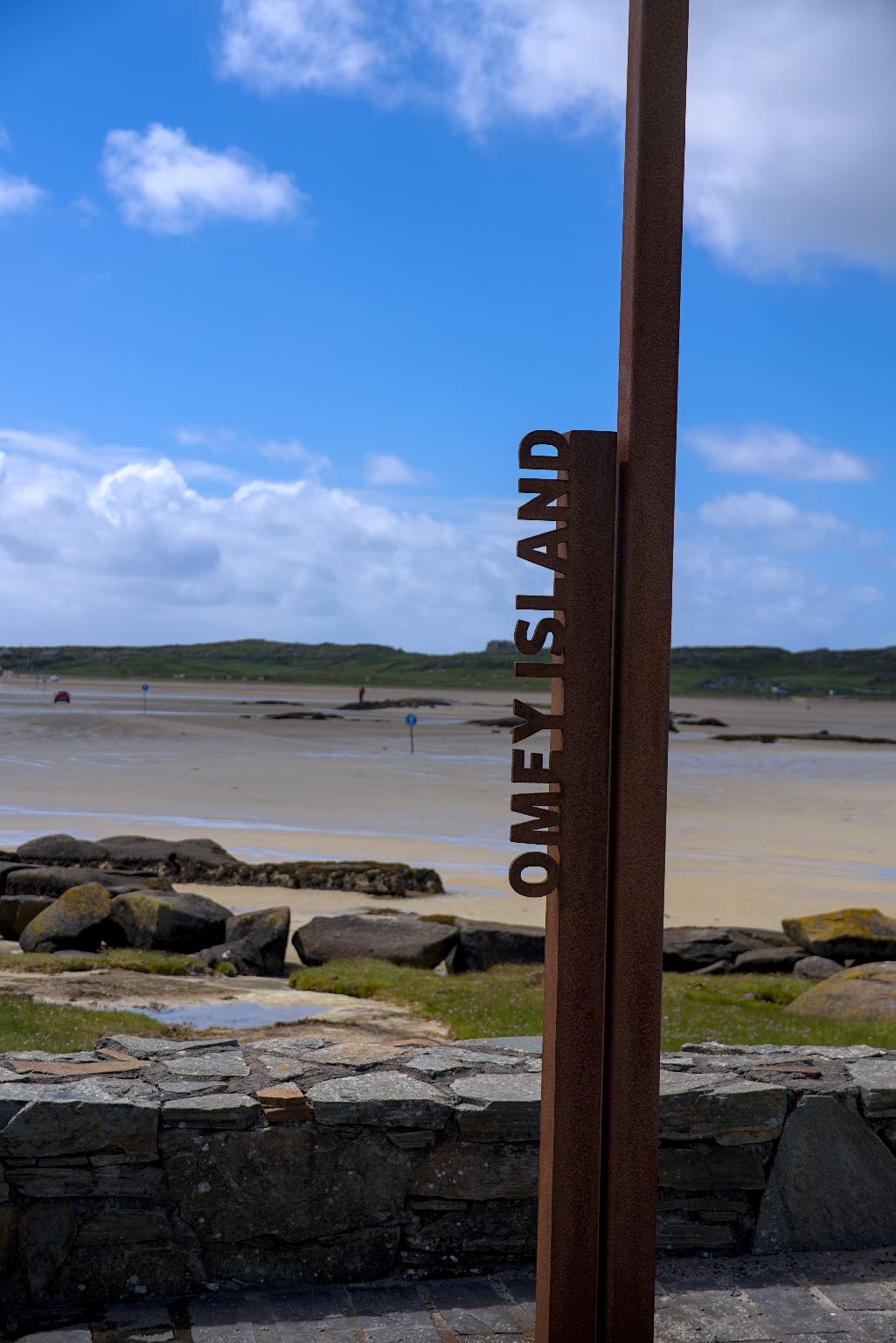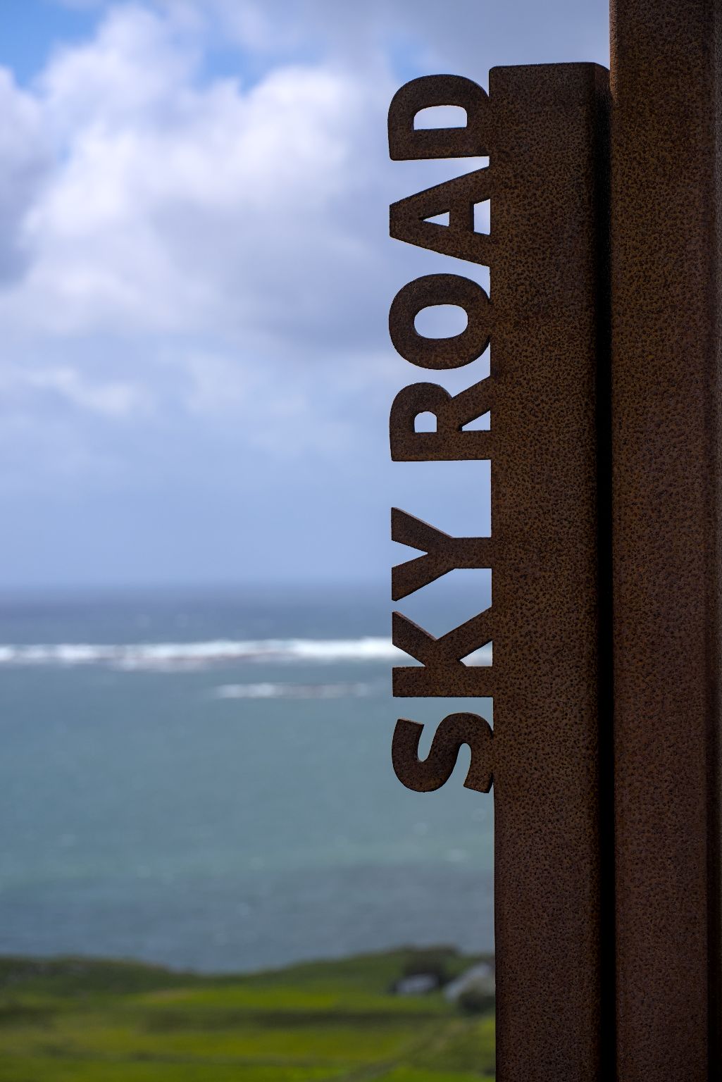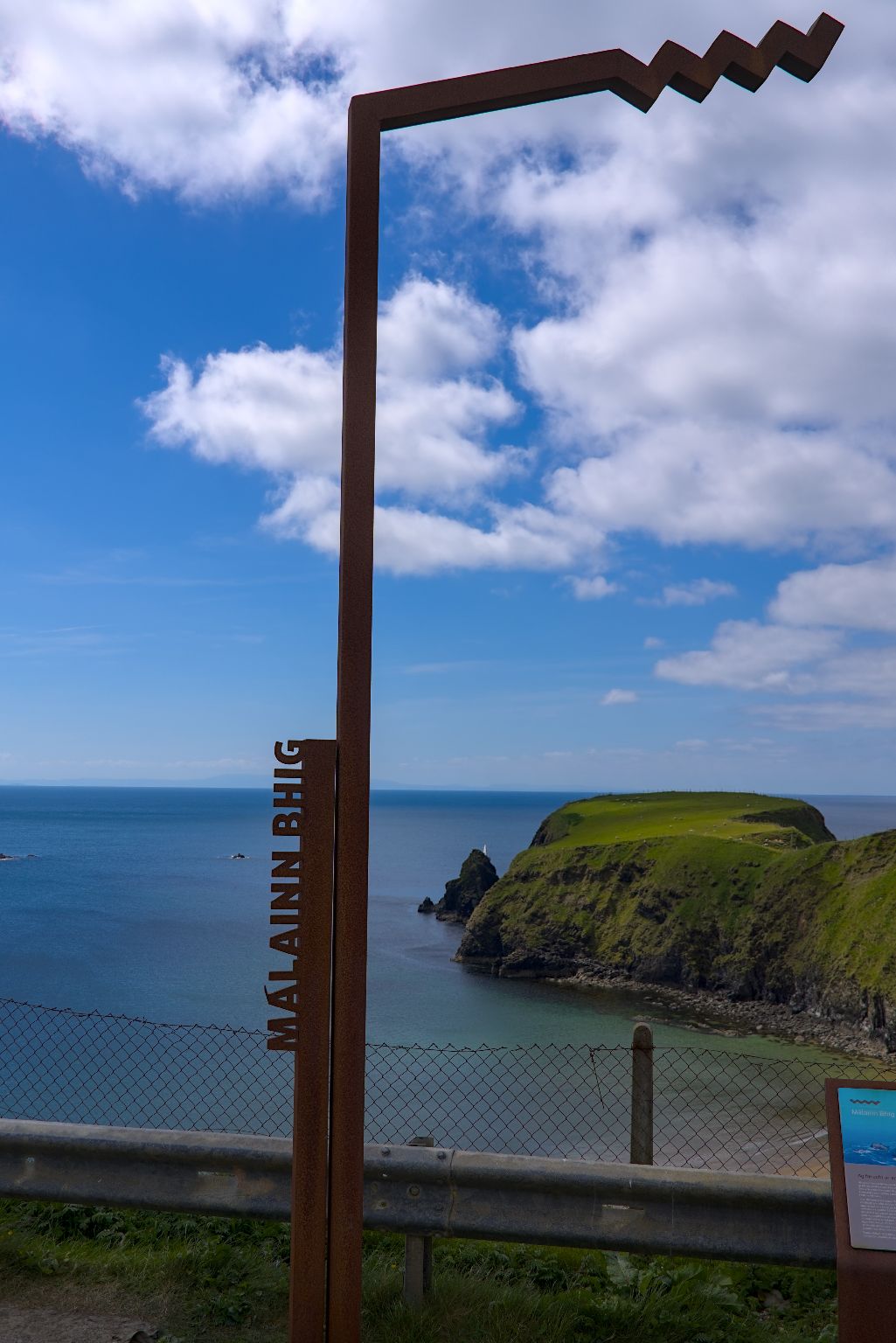 Nach dem Packen ging es zurück auf die Route. POIs des Wild Atlantic Ways sind immer mit solchen Elementen aus Cortenstahl gefertigt, welches das Symbol des WAW beinhaltet.