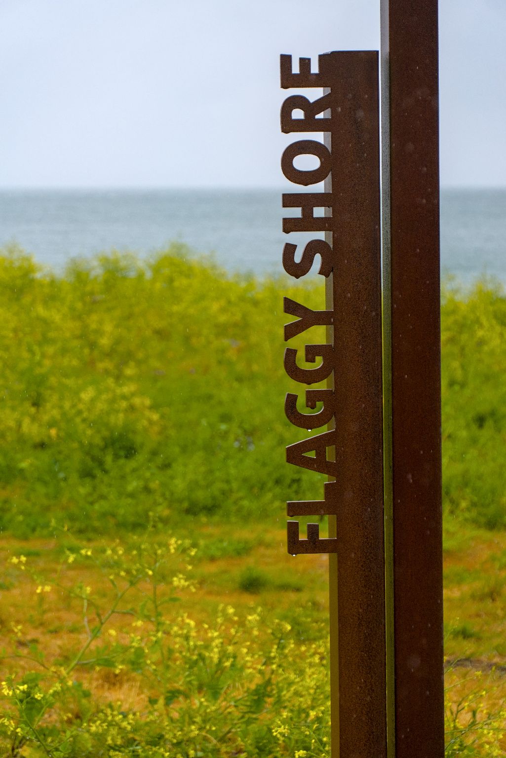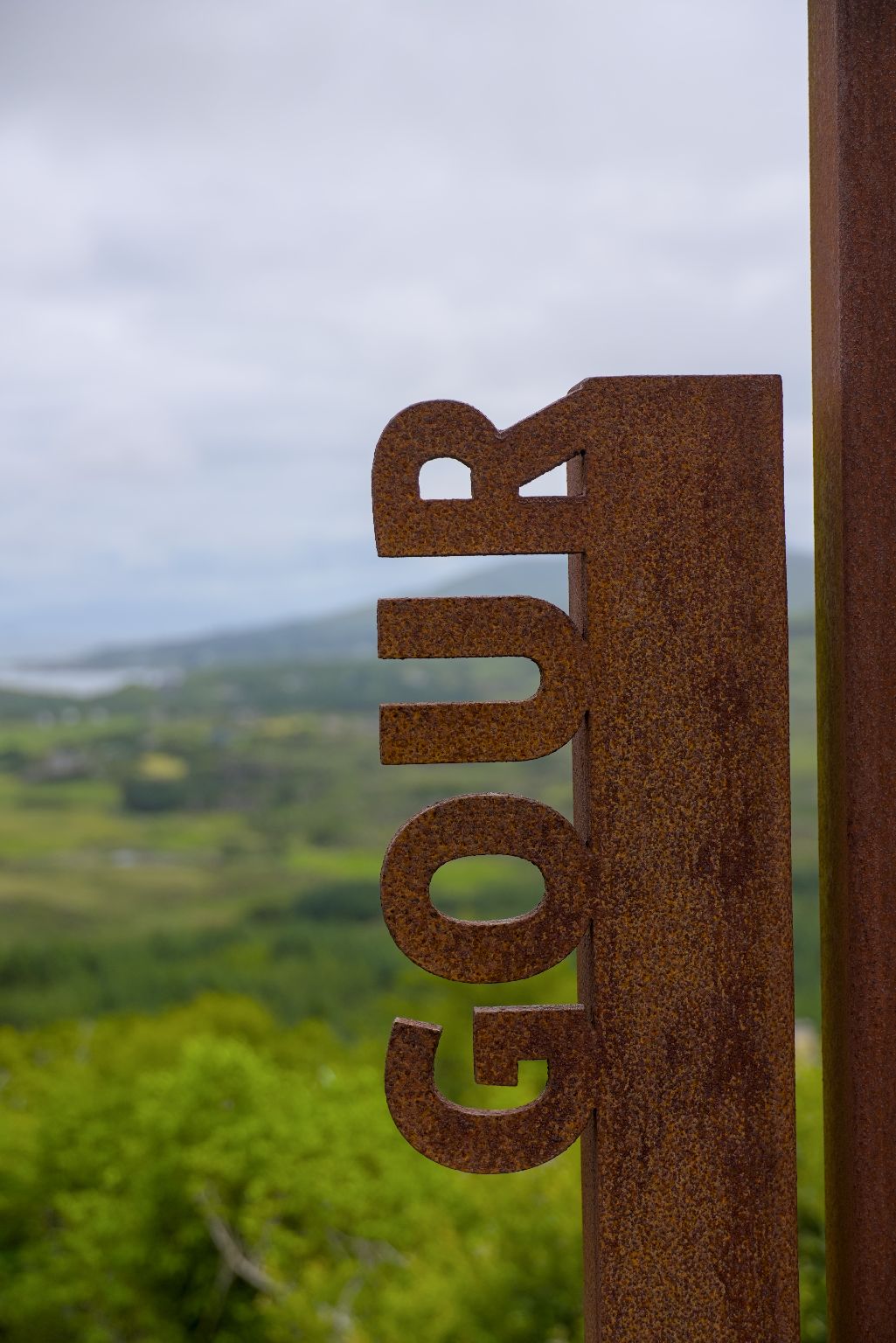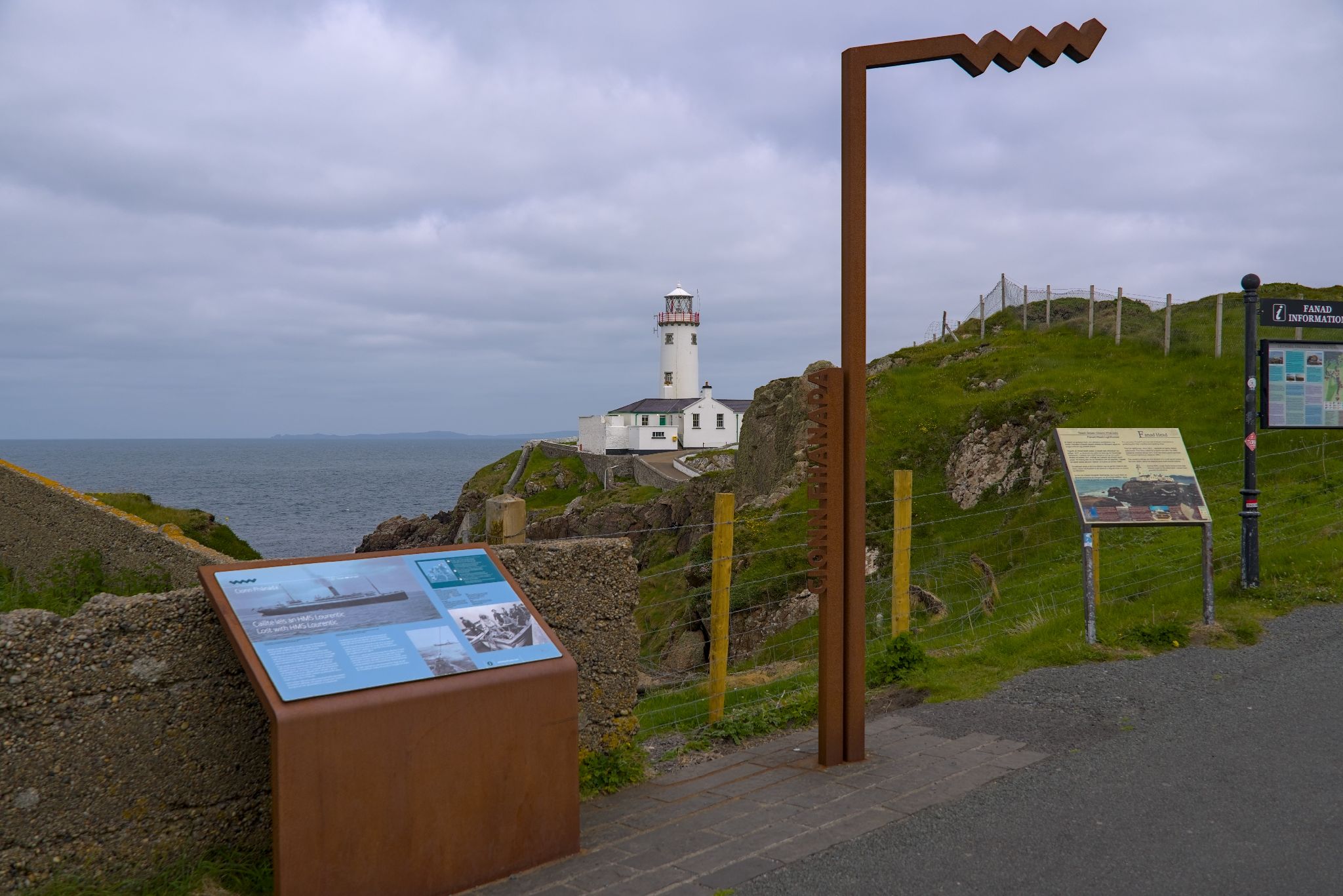 Nach dem Packen ging es zurück auf die Route. POIs des Wild Atlantic Ways sind immer mit solchen Elementen aus Cortenstahl gefertigt, welches das Symbol des WAW beinhaltet.
