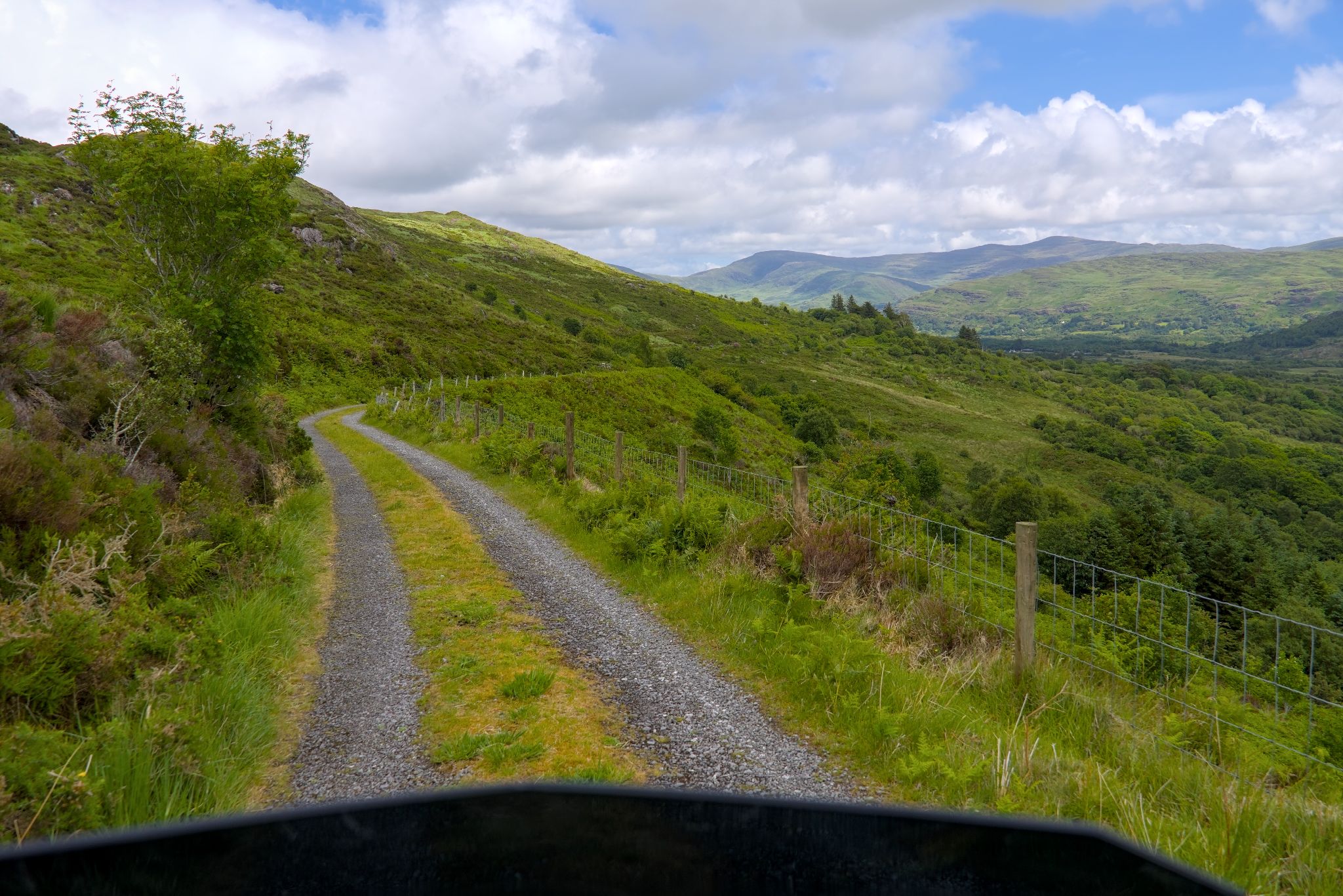 Durch das erste Tal, die Altarichard Road, sind wir auf der Insel unseren ersten Single Track gefahren.