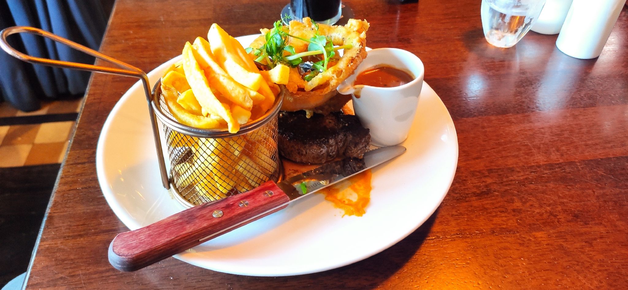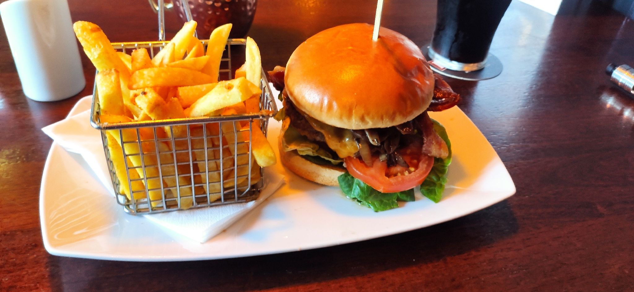 Lecker Highlander Burger und Ginnes gab es zum Abschluss des Tages im “The Pub” (G-Maps).
