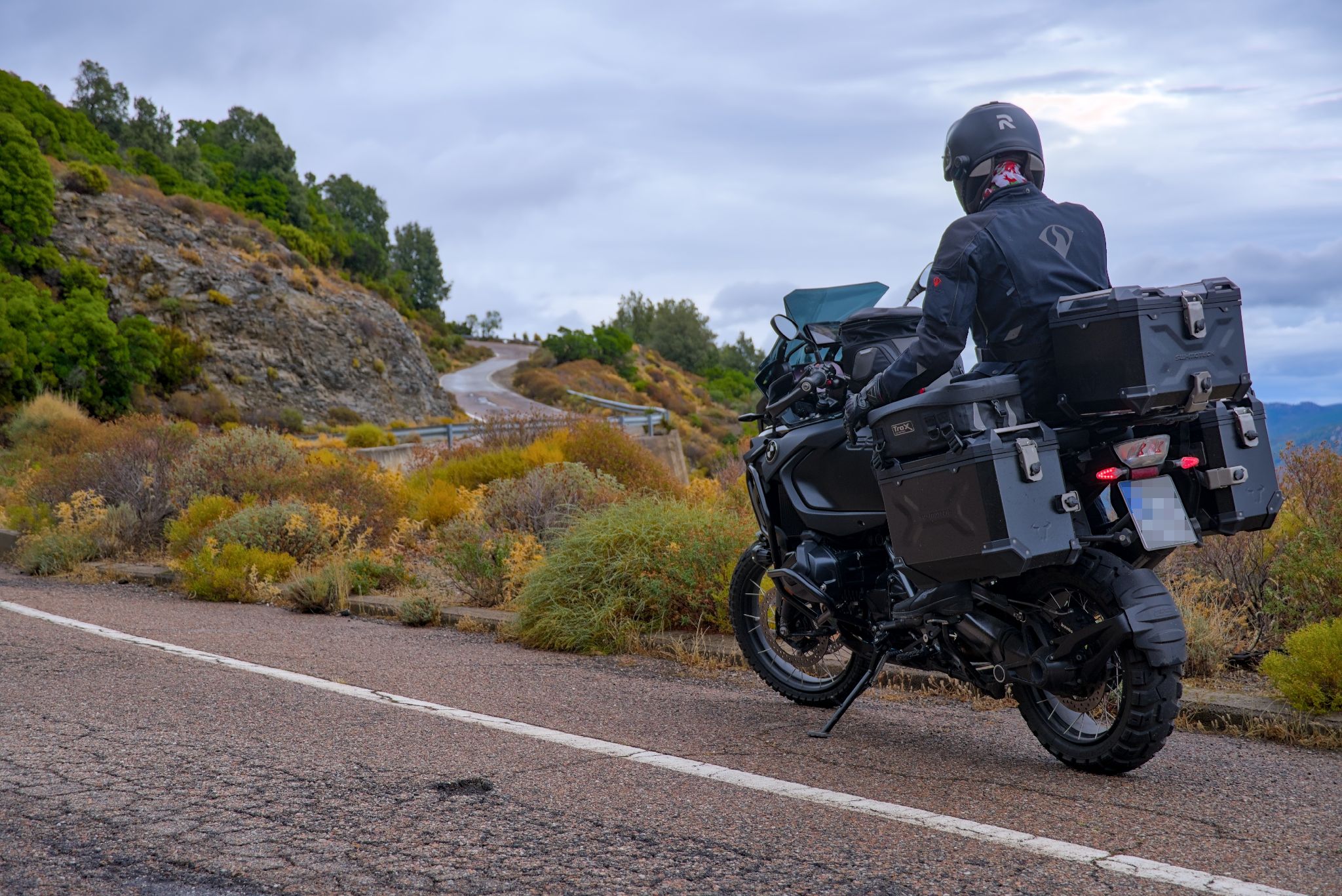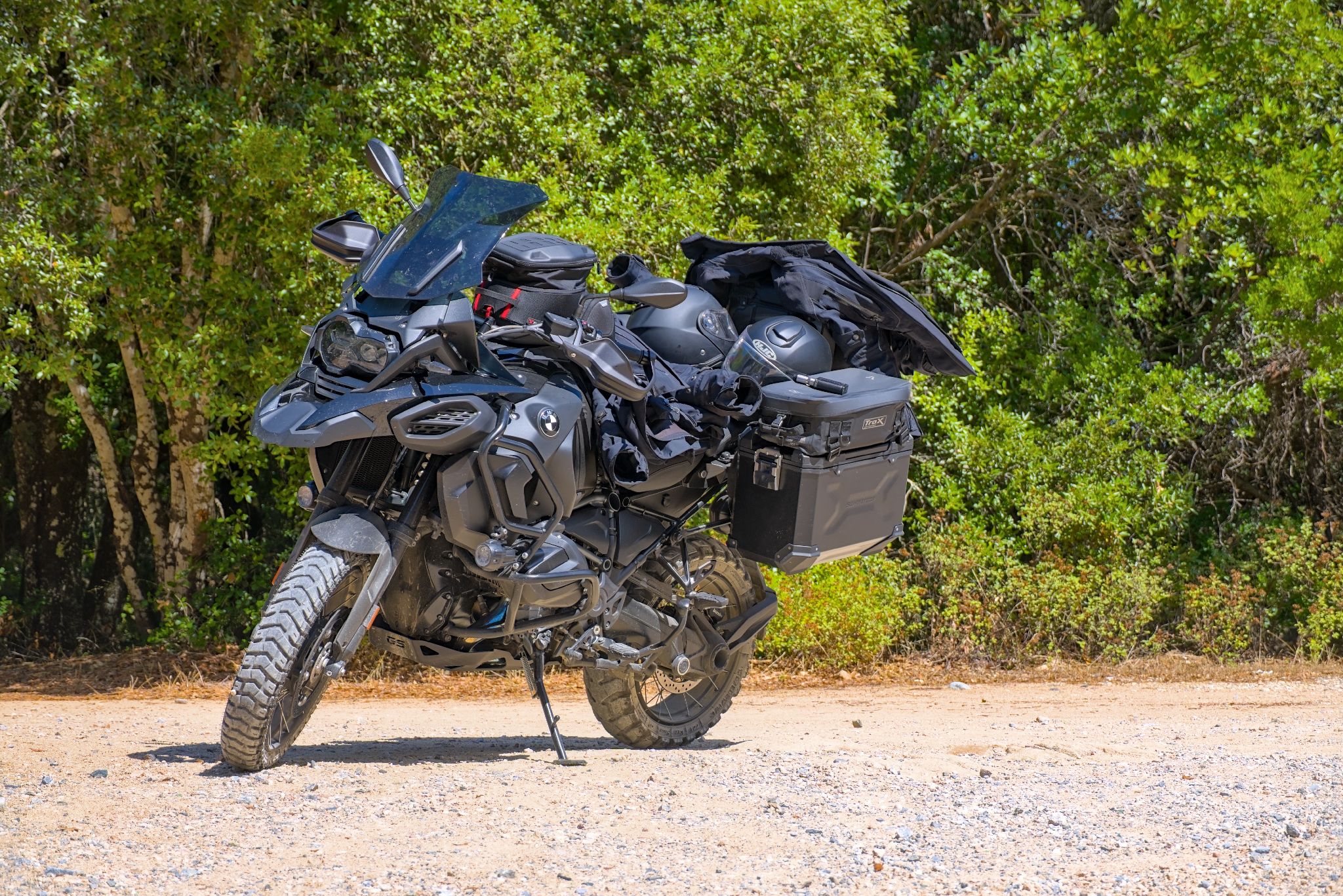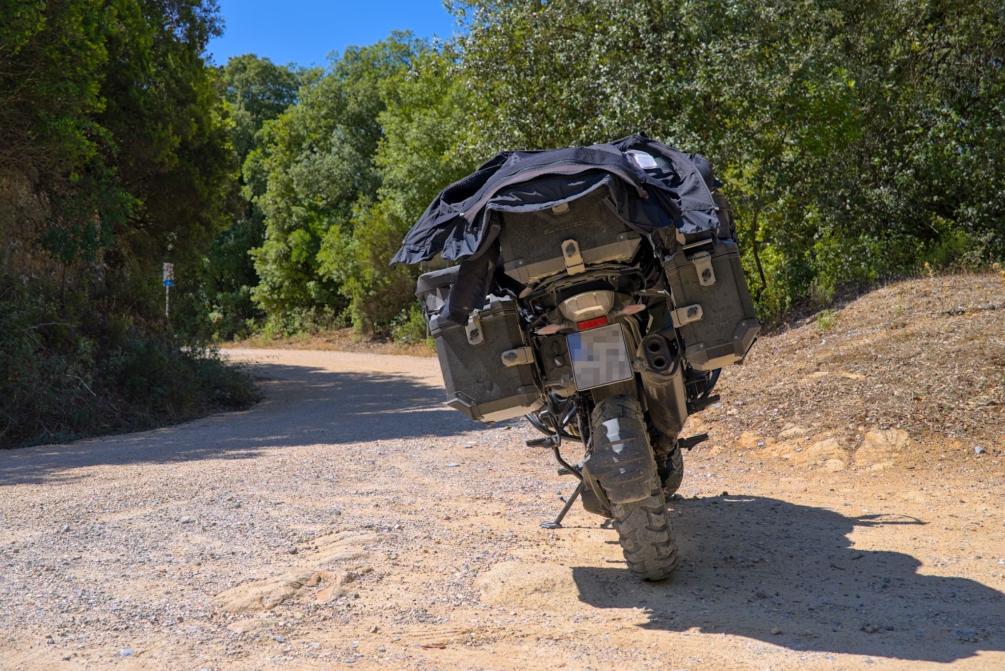 Eigentlich müsste man noch eine Mesh-Kombi mitnehmen aber das lässt der Platz auf dem Motorrad leider nicht zu.