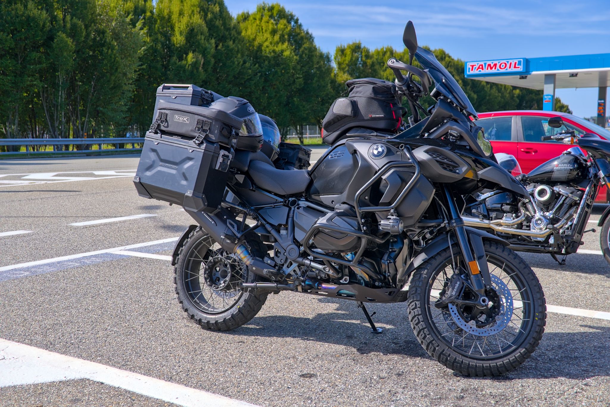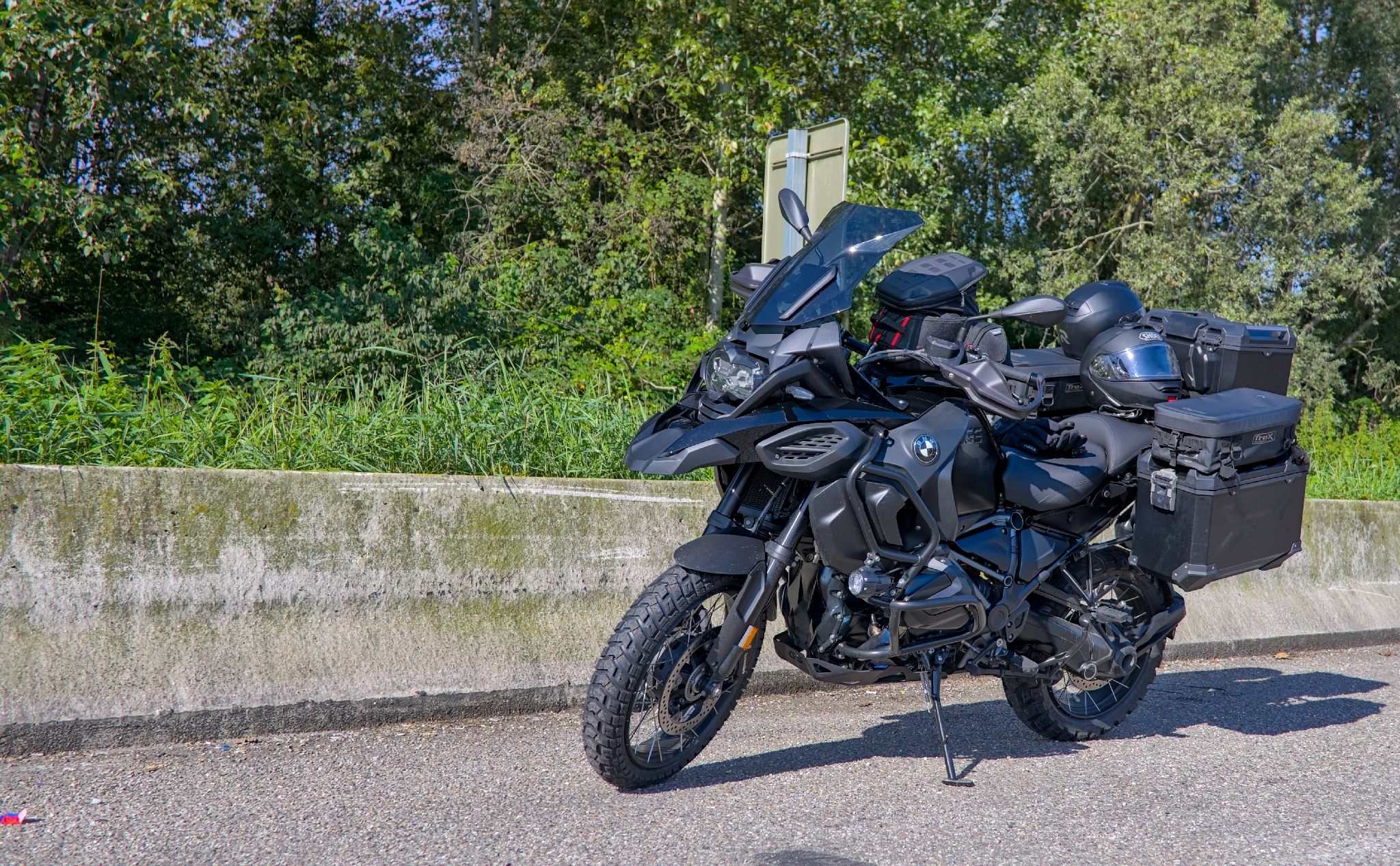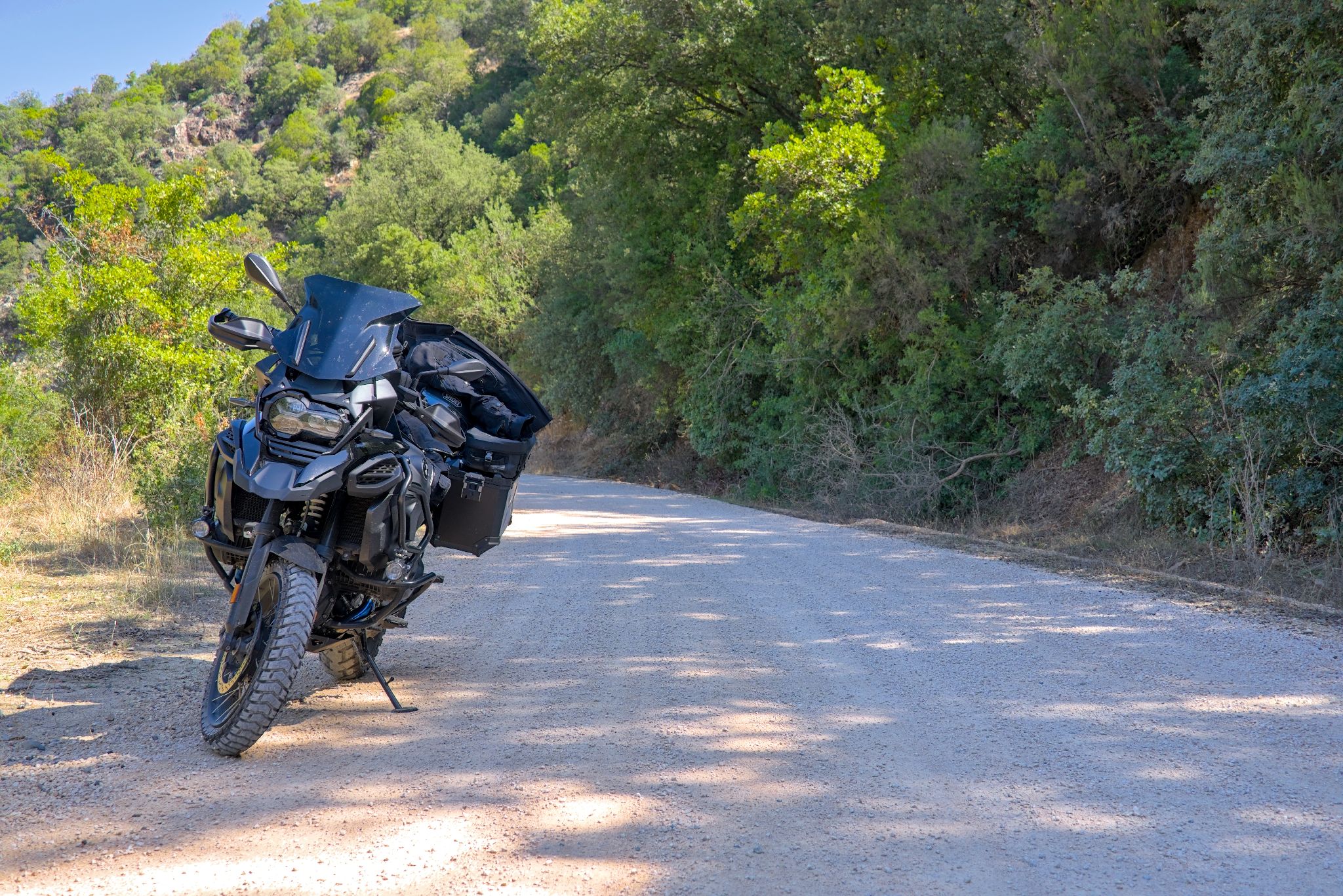 Eigentlich müsste man noch eine Mesh-Kombi mitnehmen aber das lässt der Platz auf dem Motorrad leider nicht zu.