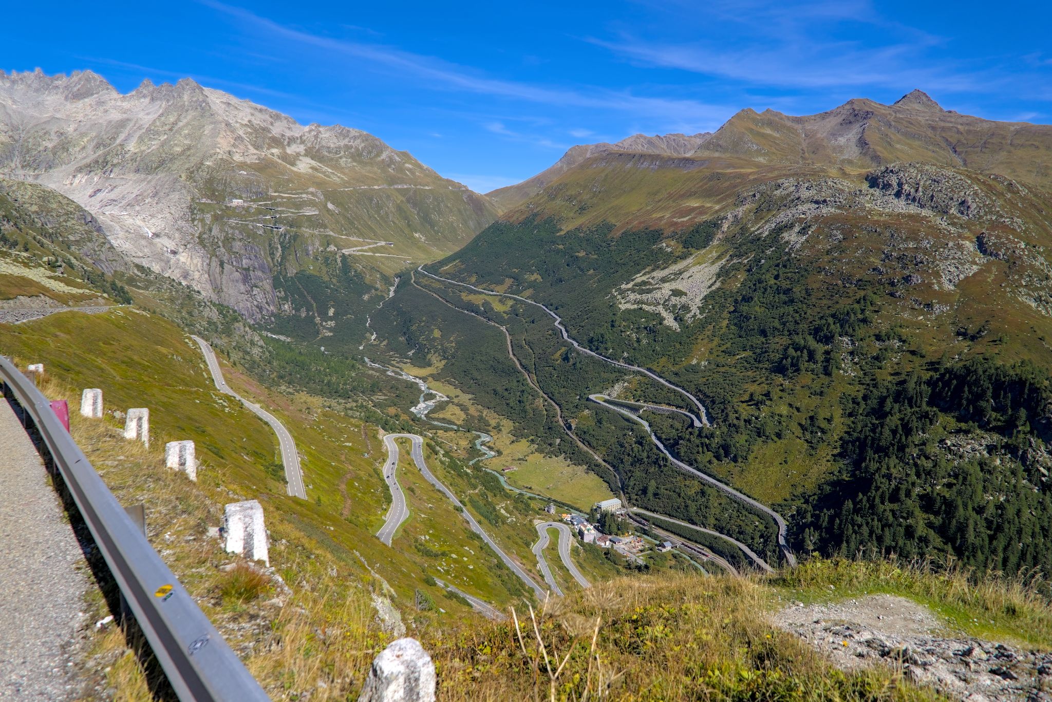 Blick Abfahrt Grimselpass nach Gletsch, Richtung Furkapass.