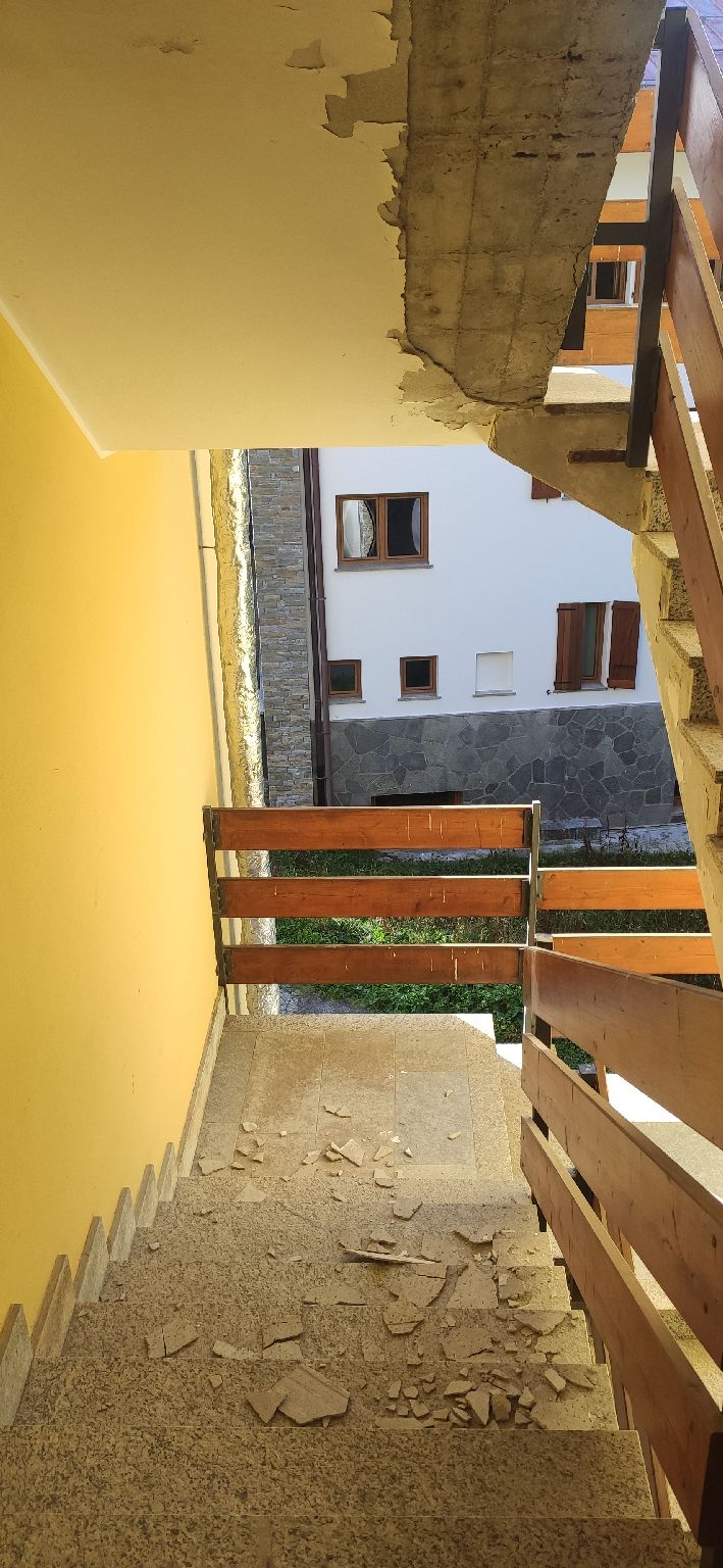 Ferienwohnung ist so lala, definitiv zu teuer für eine Nacht. Nur ein klappriges Schlafsofa als Bett. Zu allem Überfluss ist der Putz im Treppenhaus von der Decke gefallen, kurz nachdem wir unten drunter durchgelaufen sind.