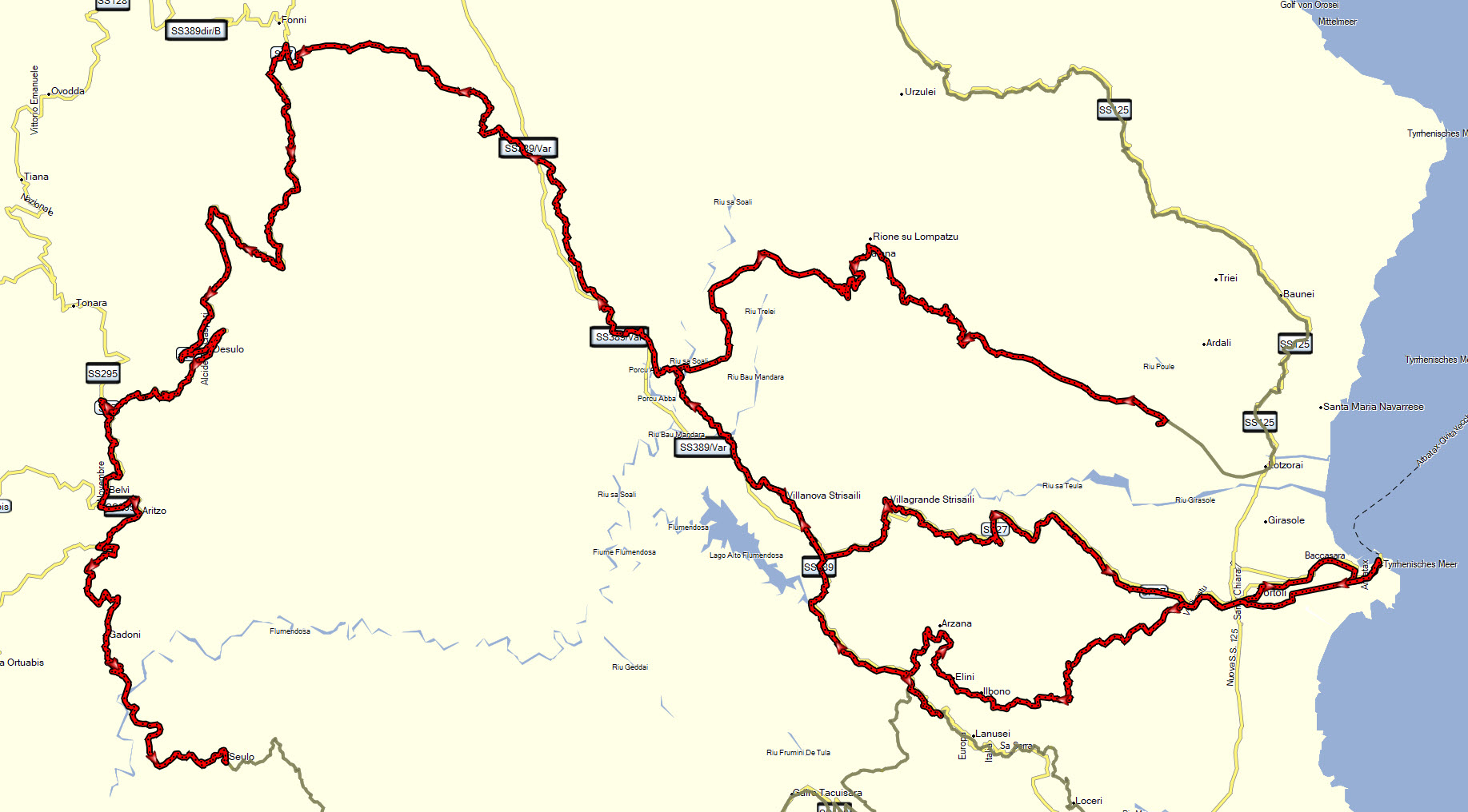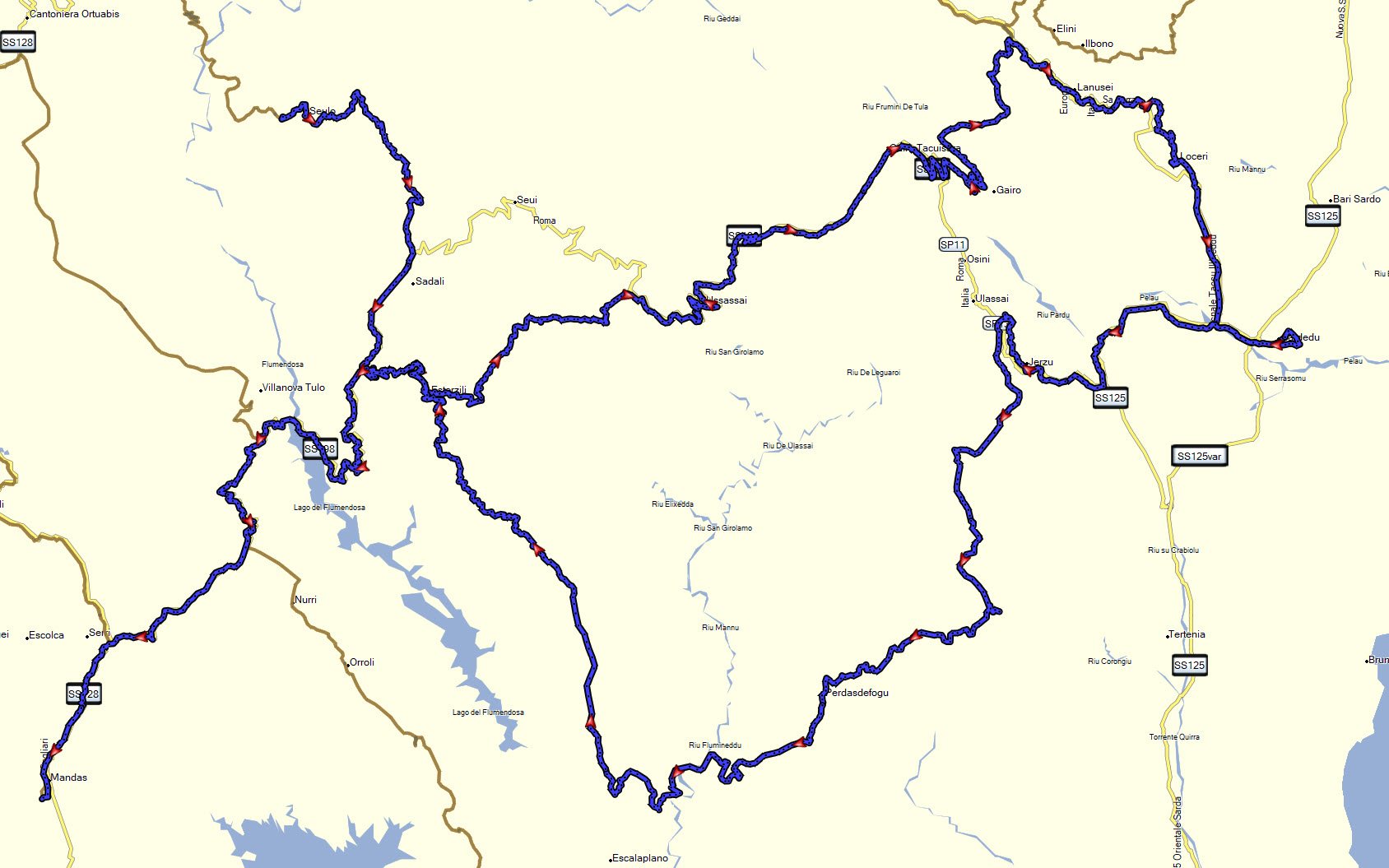 SP38 Samugheo > SP33 Allai> SS388 Busachi> SP32