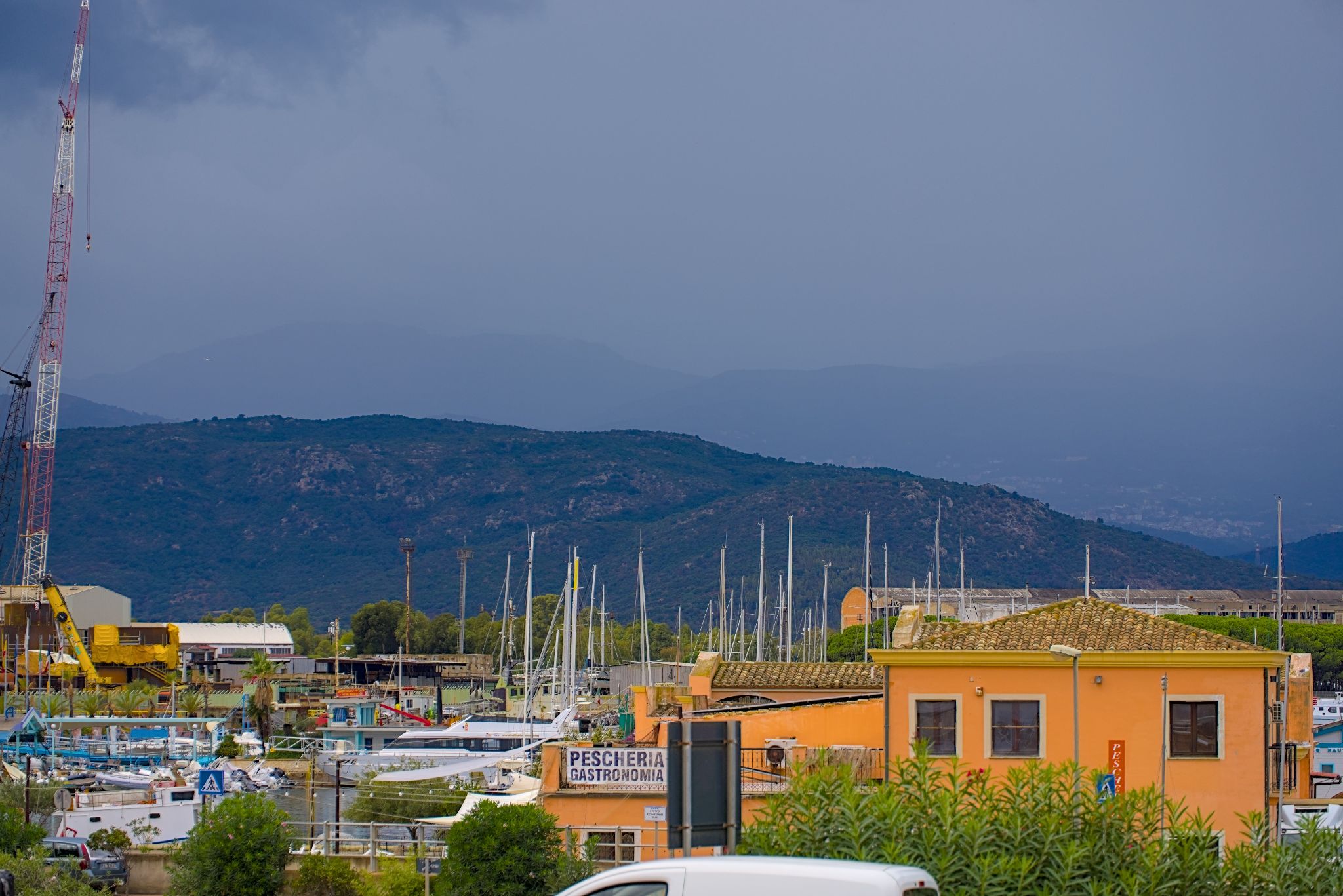Mittagsvesper am Spar in Arbatax bis Regen vorbei war.