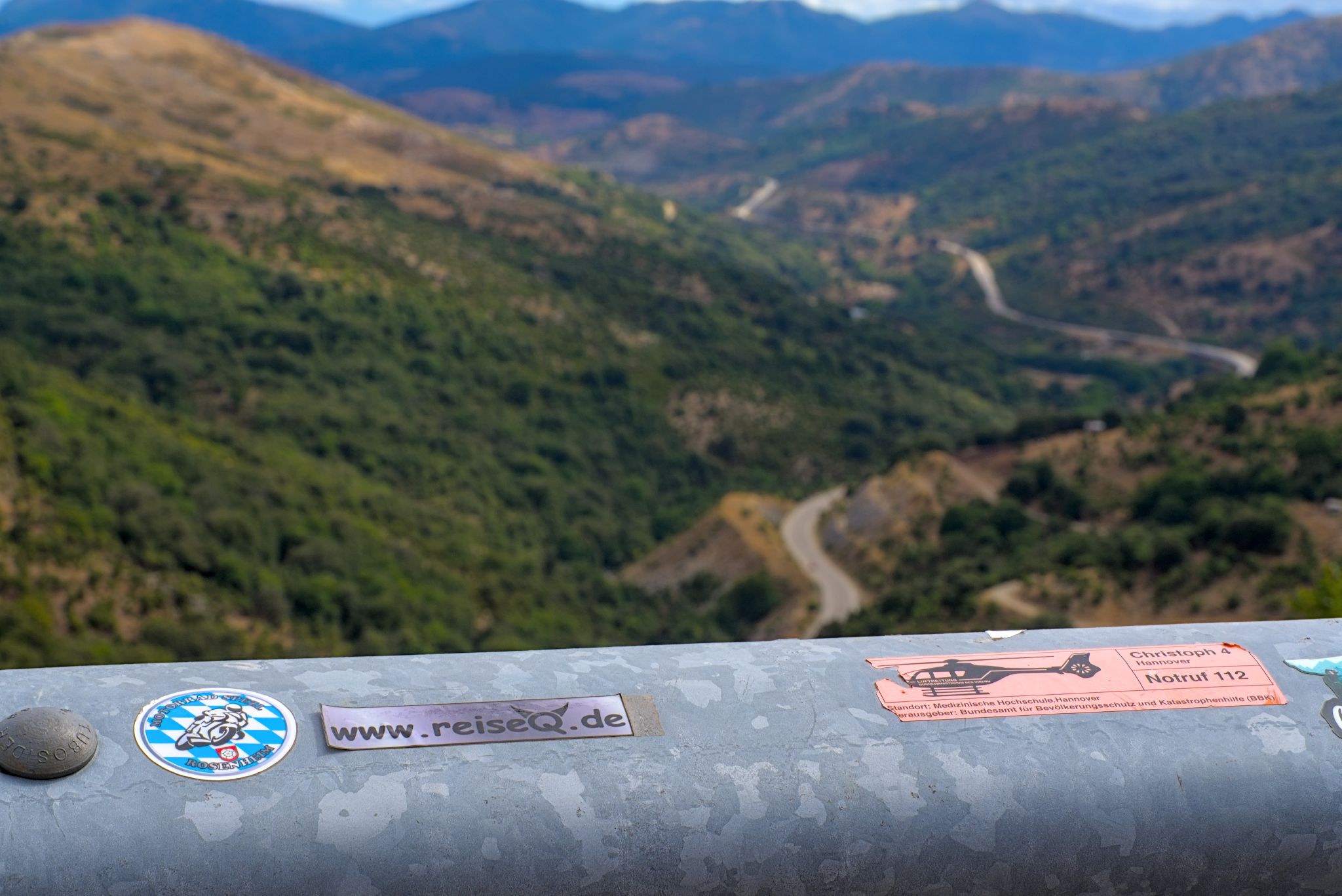 Leider kurze Zeit später ein unschönes Erlebnis: eine 4er Gruppe Österreichischer Motorradfahrer hat uns überholt, als ich für ein Foto anhielt. Ein paar Kurven später lag einer komplett zerlegt im Straßengraben. Wohl vor lauter Euphorie eine scheiß Linie gefahren und am entgegenkommenden Müllwagen hängen geblieben. Zum Glück ist ihm nix schlimmes passiert. Bike war aber kaputt. Schade wenn so ein Urlaub startet bzw. gleich wieder endet.