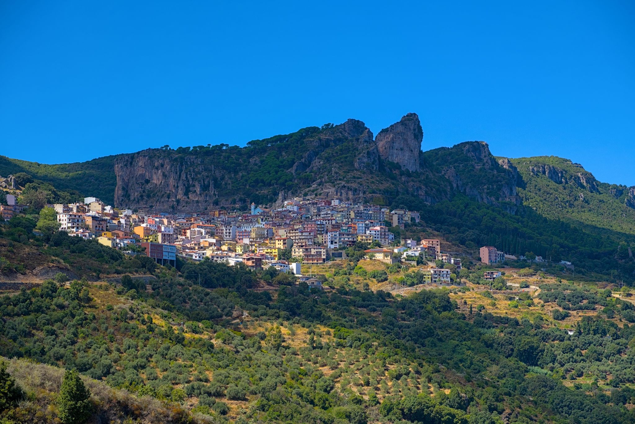 Das Örtchen Bitti und oben links das Hotel.