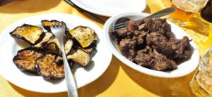 Oberleckeres sardischen Dinner am Abend, mit Hauswein, so dass wir uns fast gekugelt haben.